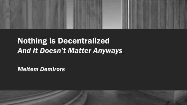 Smart contracts, distributed computing, tokenization Protocols: Bitcoin, Ethereum, IPFS, RSK, Blockstack @Melt_Dem 28 Governance Layer Voting, polling, community updates, forums, foundations • Not enough to implement decentralization at the technology layer • Have to add in a governance layer which links to the protocol, network, and application