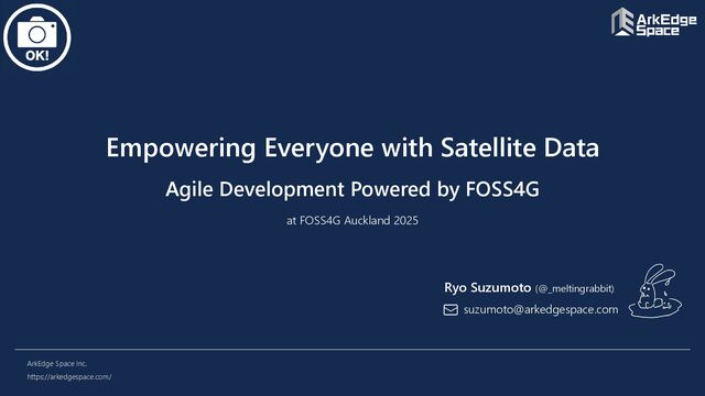 • We would love to bring our geospatial platform / applications to more regions around the world — together with you! Your Support in Collecting Valuable Local Data • To unlock the full potential of satellite data, we truly need your help in gathering local datasets such as weather observations, river water levels, soil moisture, air-quality data, landslide-monitoring data, and more! Co-Developing Solutions with Domain Experts • ArkEdge Space has strong expertise in satellite data and IoT, but we are not experts in all the critical domains — agriculture, disaster management, hydrology, environment, and many others. Let’s Grow the FOSS4G Community Together • And of course — we want to continue growing and energizing the FOSS4G community together with all of you! This is why collaboration with experts like you is so important for creating meaningful and impactful applications! 2025/11/21 Empowering Everyone with Satellite Data – Agile Development Powered by FOSS4G @FOSS4G Auckland 2025 22