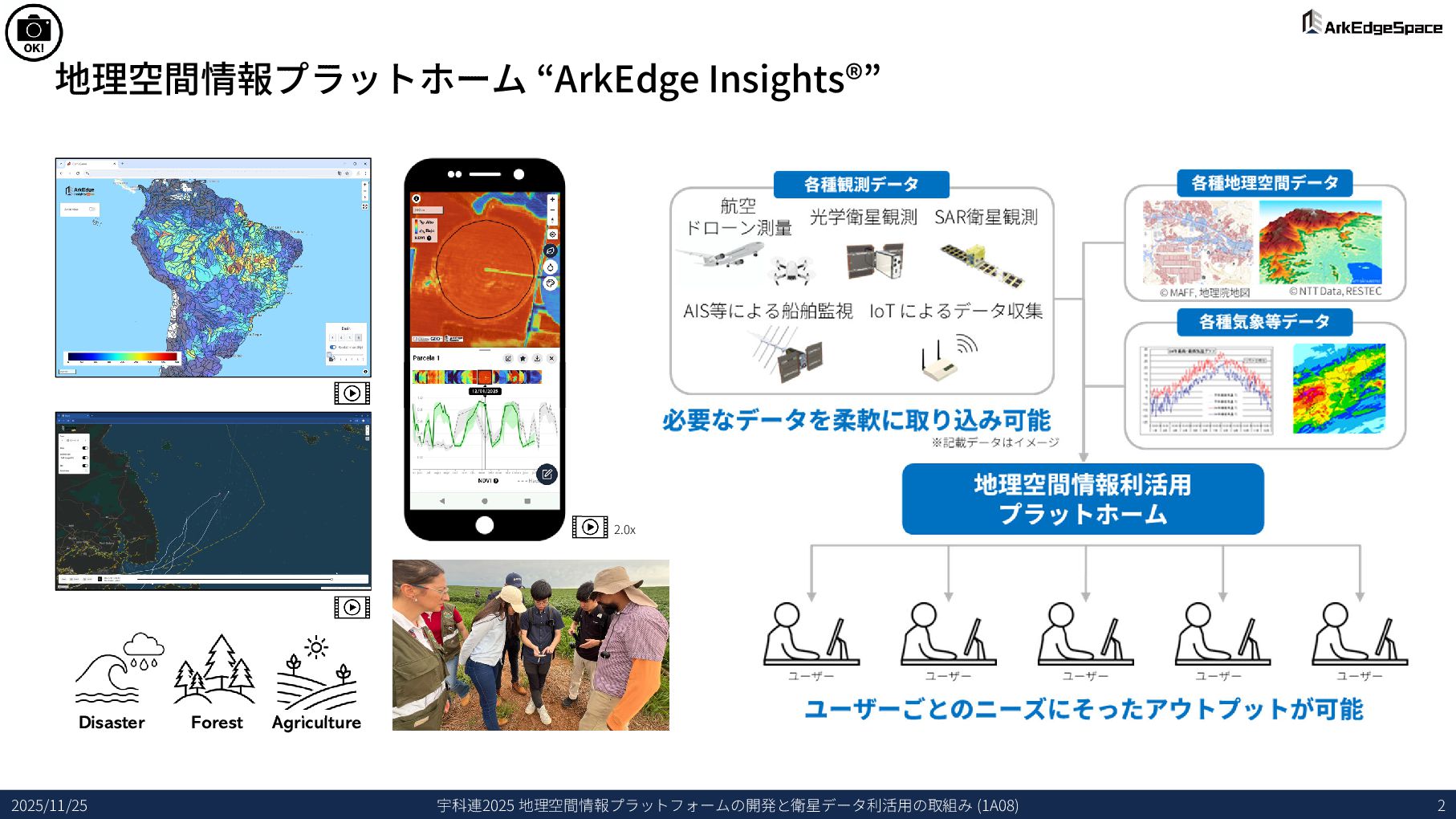 地理空間情報プラットホーム “ArkEdge Insights®” 2025/11/25 宇科連2025 地理空間情報プラットフォームの開発と衛星データ利活用の取組み (1A08) 2 Forest Agriculture