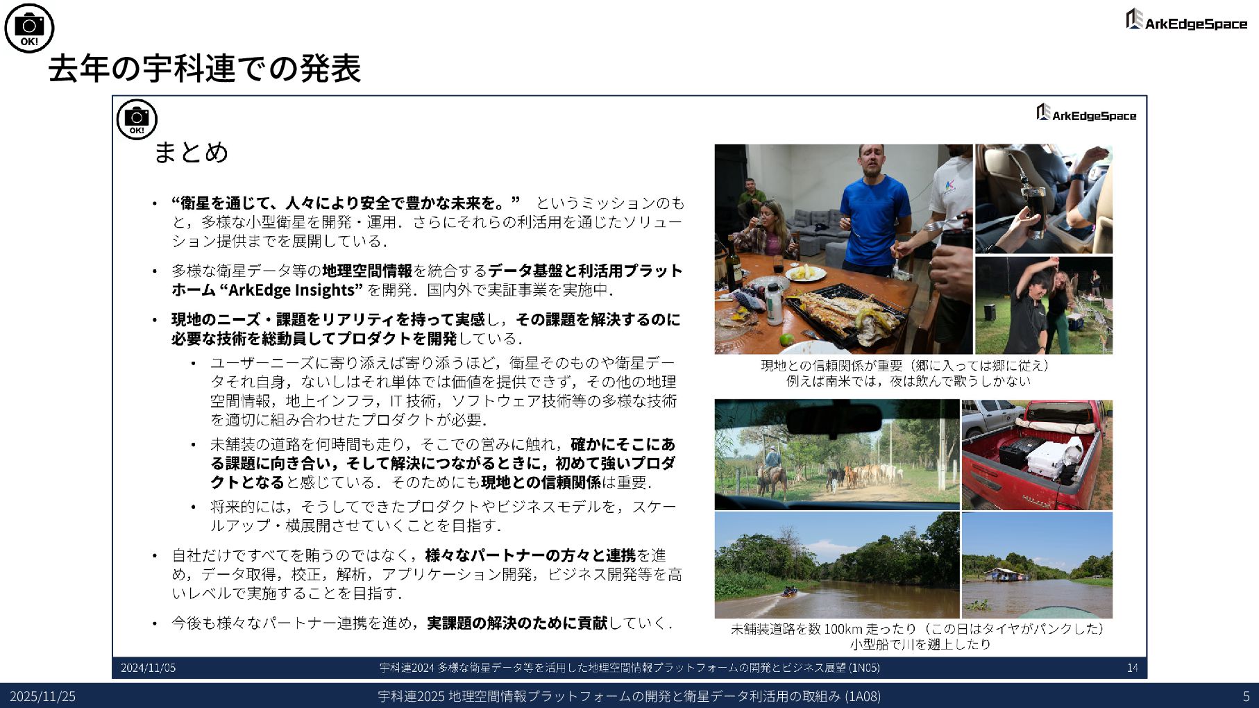 去年の宇科連での発表 2025/11/25 宇科連2025 地理空間情報プラットフォームの開発と衛星データ利活用の取組み (1A08) 5