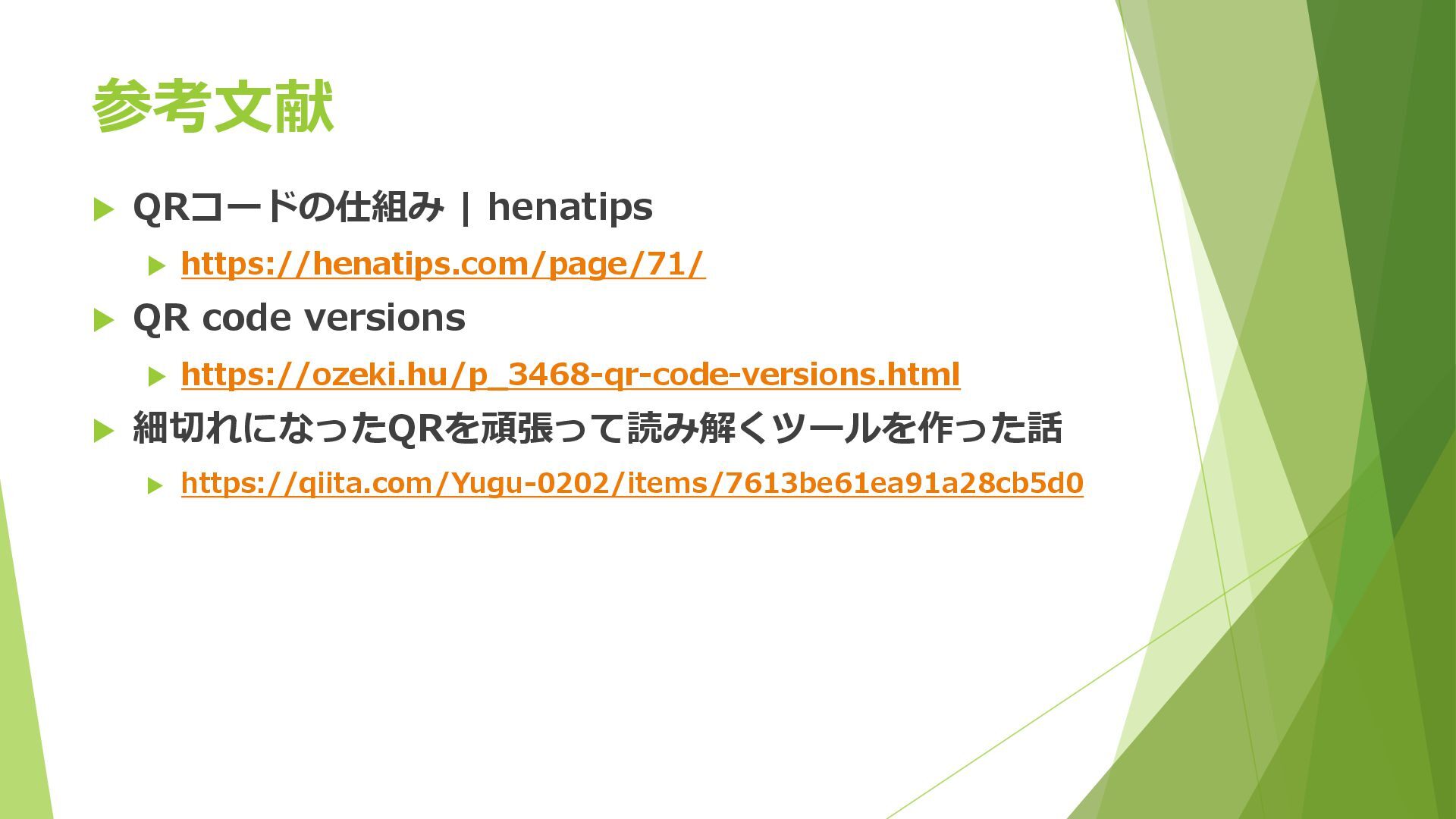 参考⽂献 u QRコードの仕組み | henatips u https://henatips.com/page/71/ u QR code