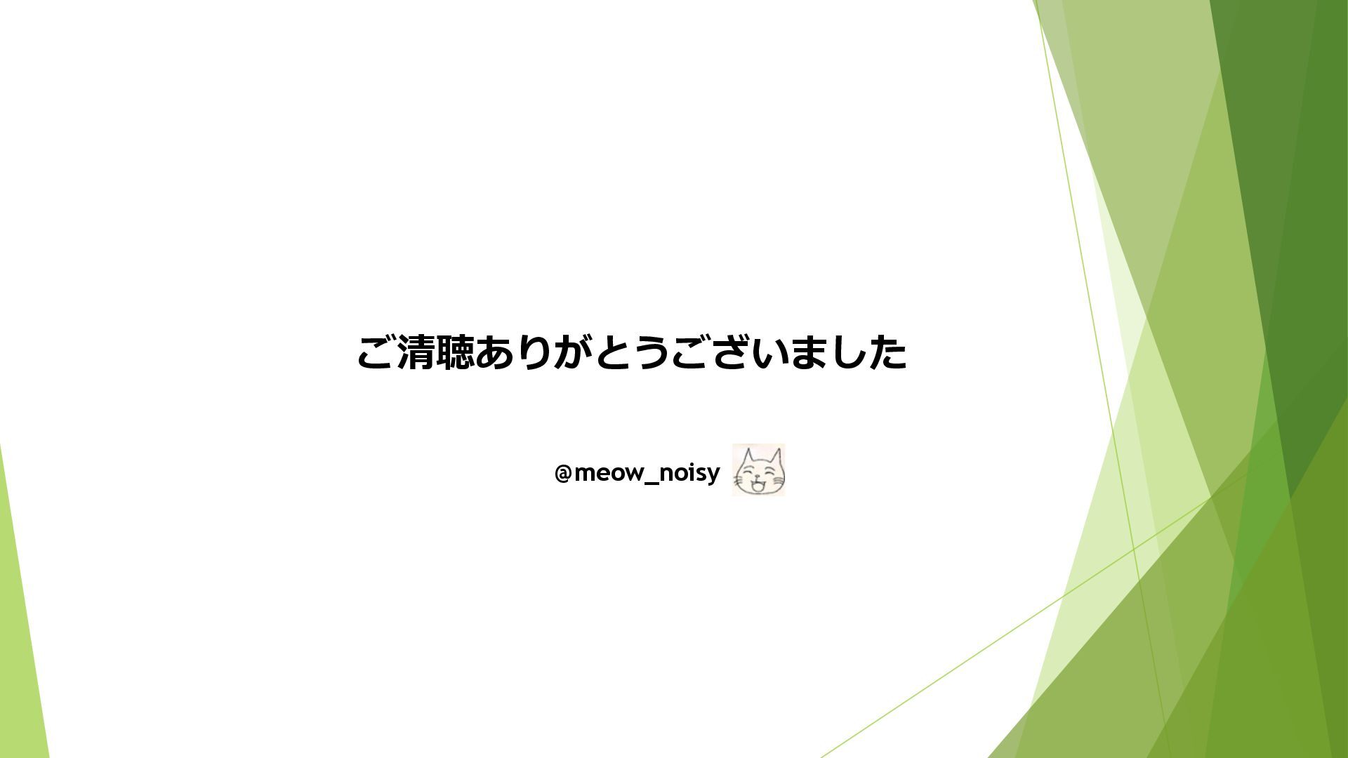 本発表の内容を⽤いたことにより起こした、いかなる損害、損失に対し著者は⼀切責任を負いません。