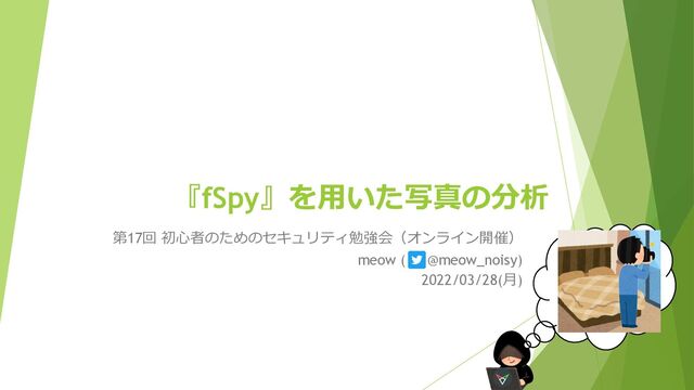 1. おしながき u 写真の分析について u 『fSpy』について u 本来の使い⽅ u 写真の分析への応⽤ u