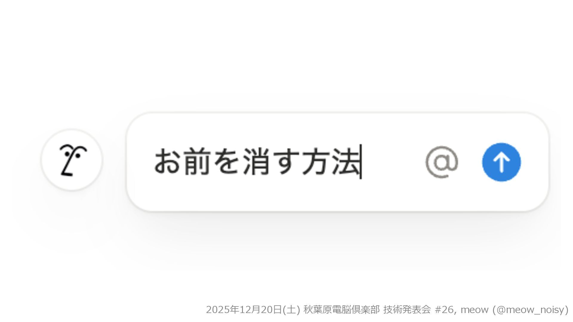 2025年12⽉20⽇(⼟) 秋葉原電脳倶楽部 技術発表会 #26, meow (@meow_noisy)