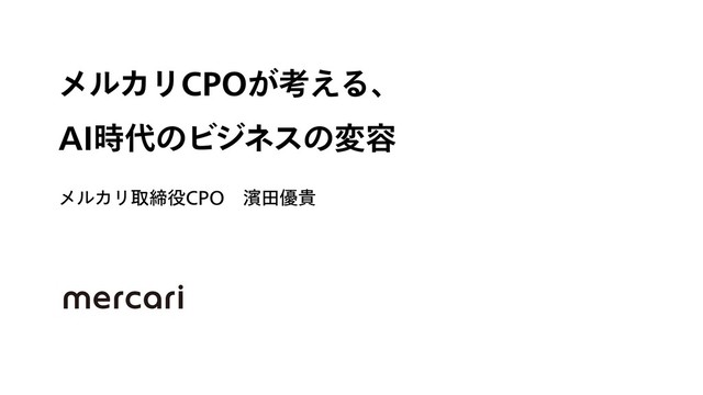メルカリCPOが考える、 AI時代のビジネスの変容 メルカリ取締役CPO 濱⽥優貴