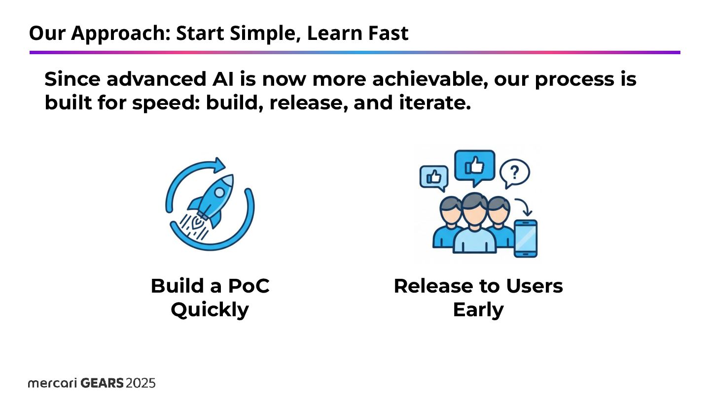 Quickly Release to Users Early Since advanced AI is now more achievable, our process is built for speed: build, release, and iterate.
