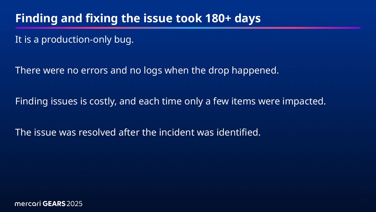 Finding issues is costly, and each time only a few items were impacted.