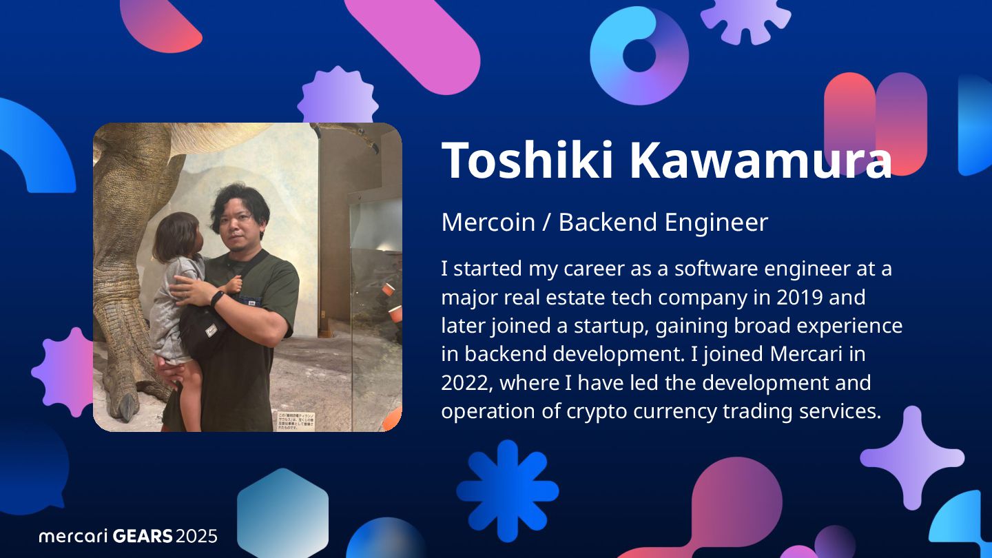software engineer at a major real estate tech company in 2019 and later joined a startup, gaining broad experience in backend development. I joined Mercari in 2022, where I have led the development and operation of crypto currency trading services.