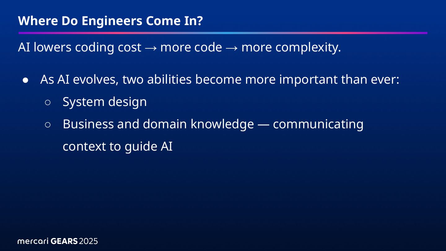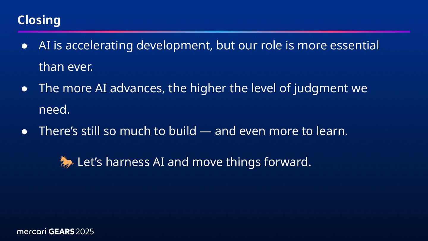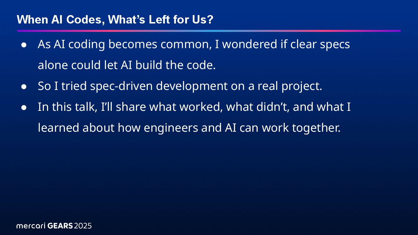 • In this talk, I’ll share what worked, what didn’t, and what I learned about how engineers and AI can work together.