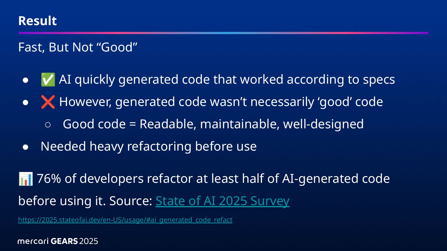 • ❌ However, generated code wasn’t necessarily ‘good’ code