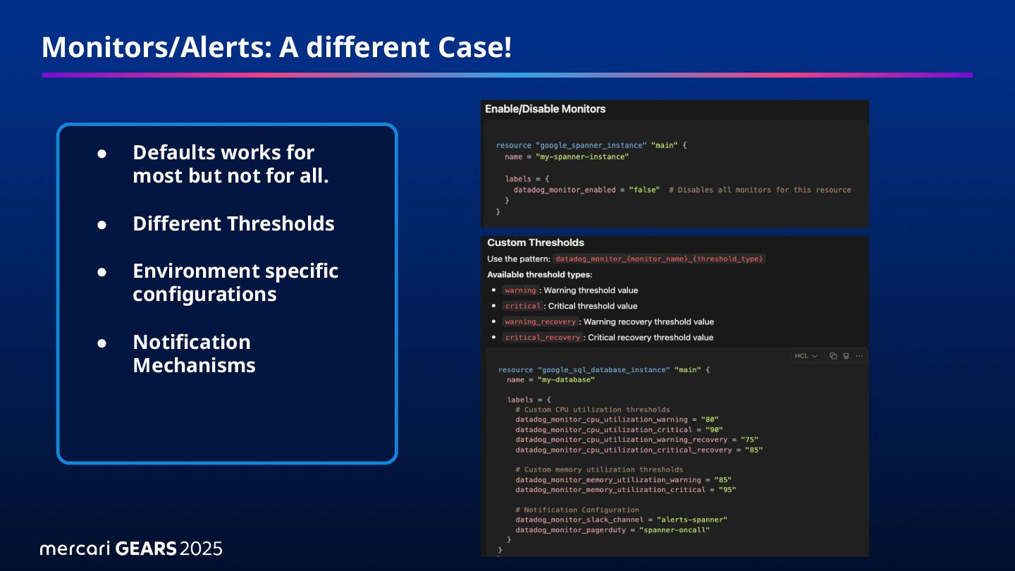 Monitors/Alerts: A different Case! • Defaults works for most but