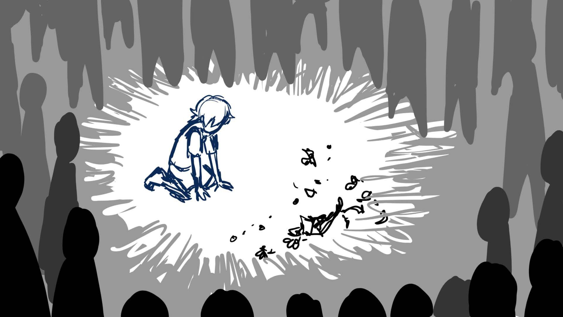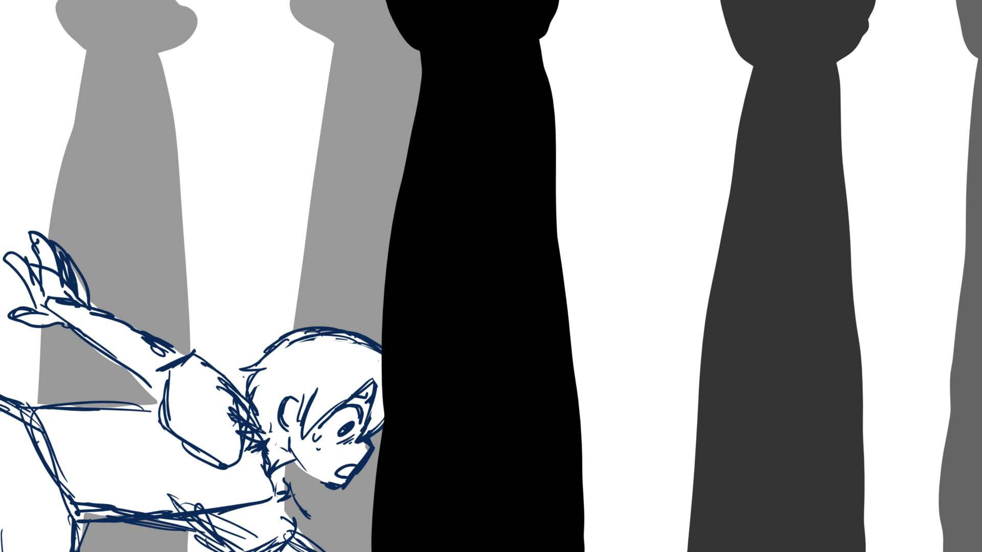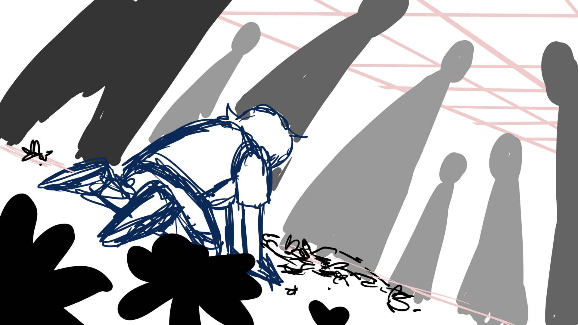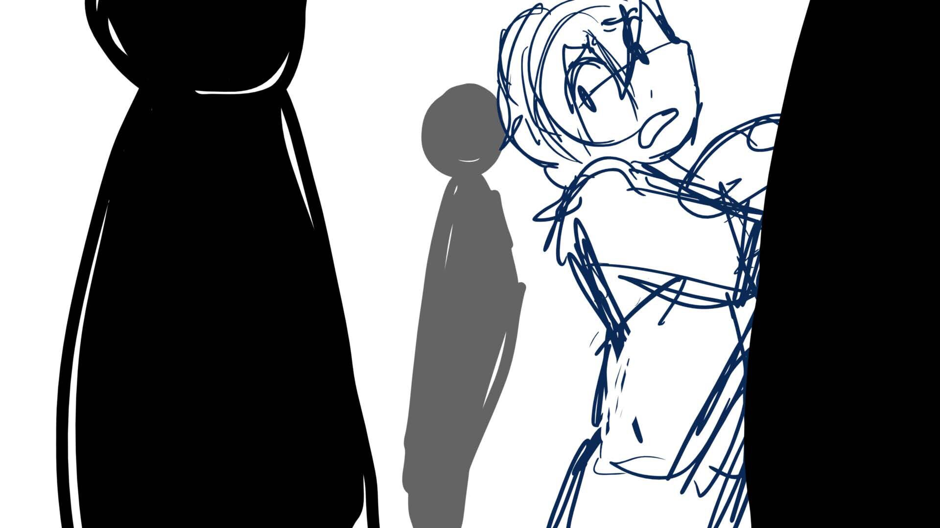 A climactic scene from the short film 'Monochromi'.