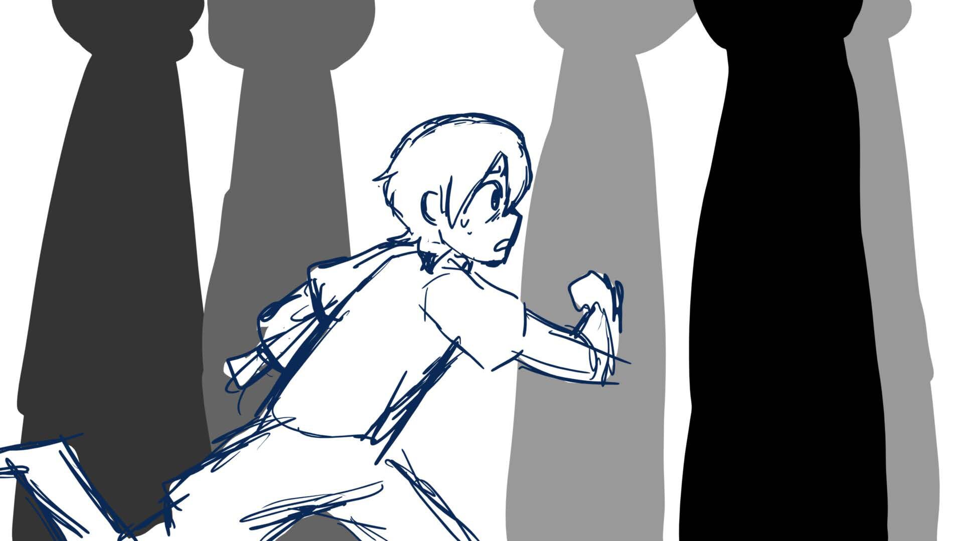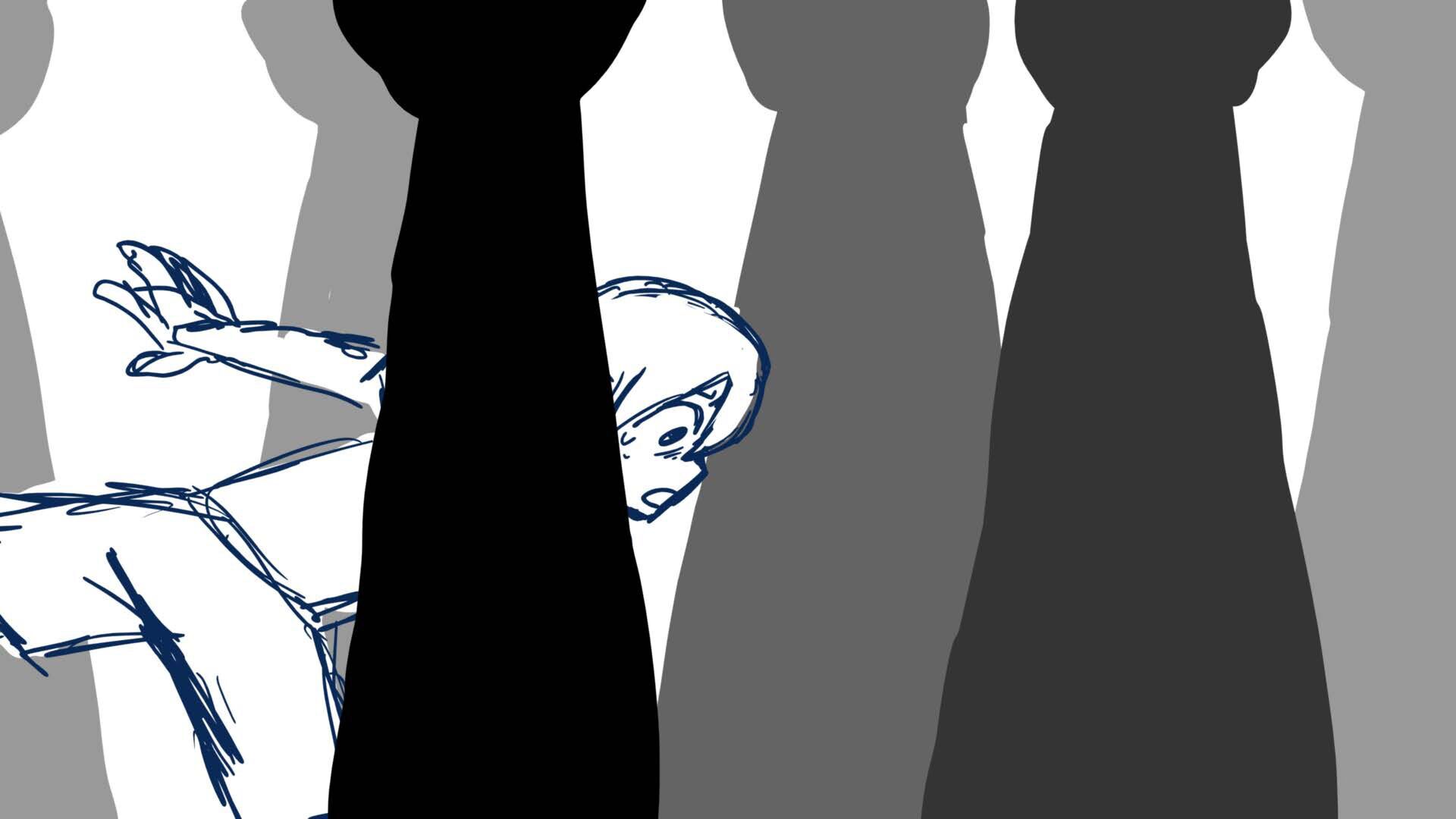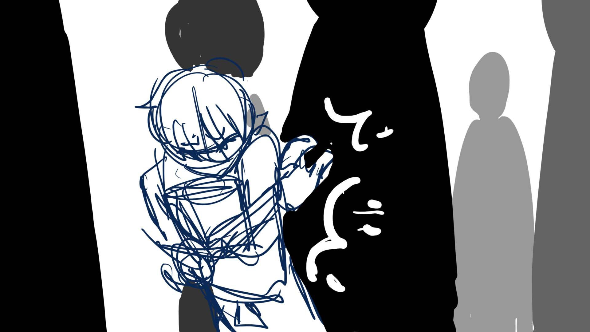 A climactic scene from the short film 'Monochromi'.