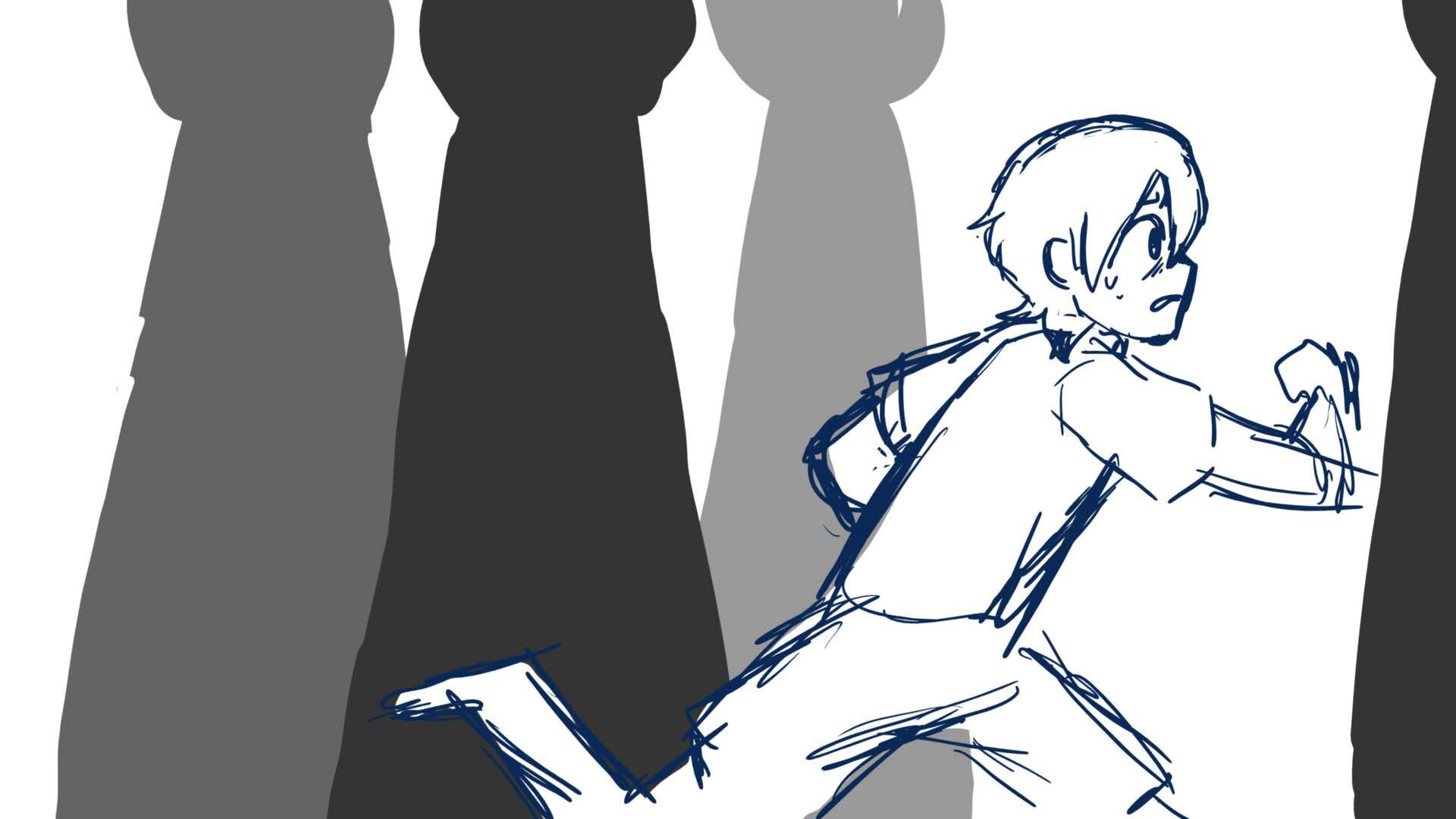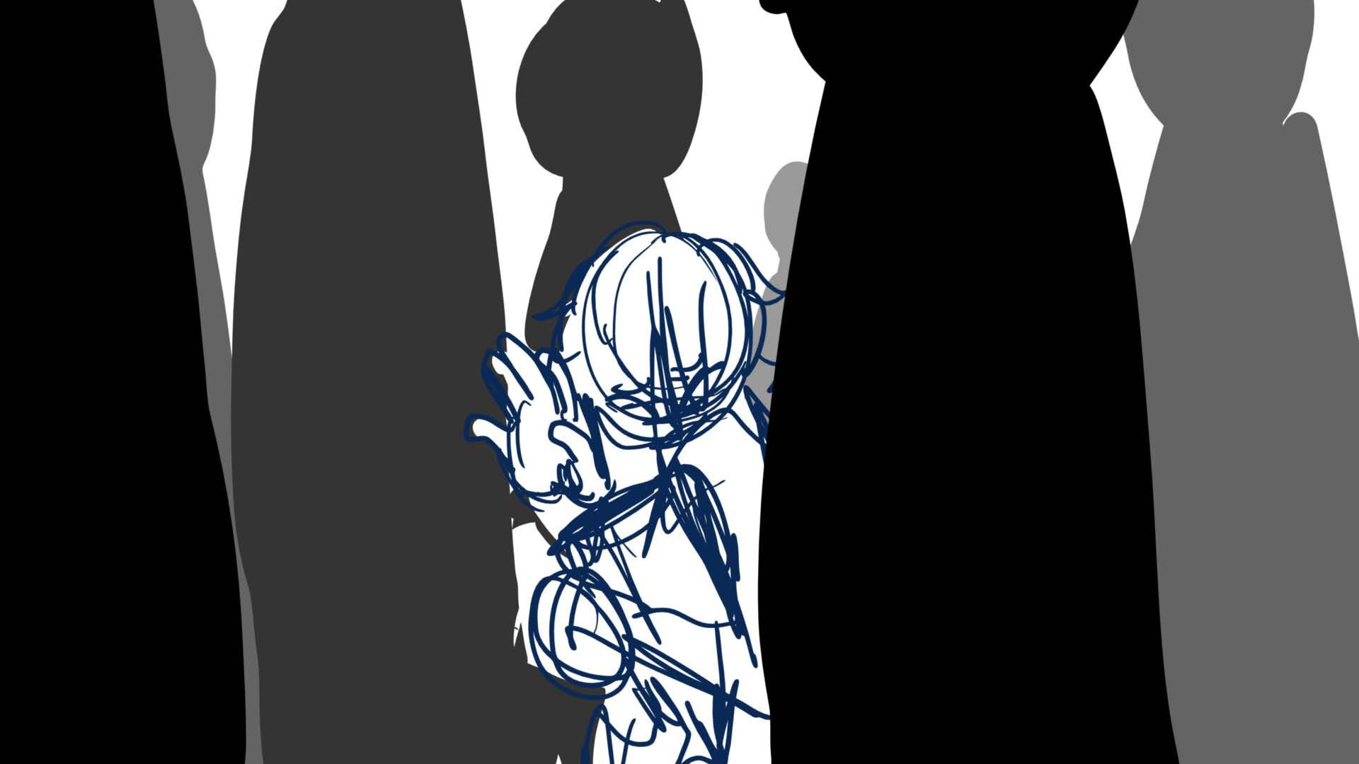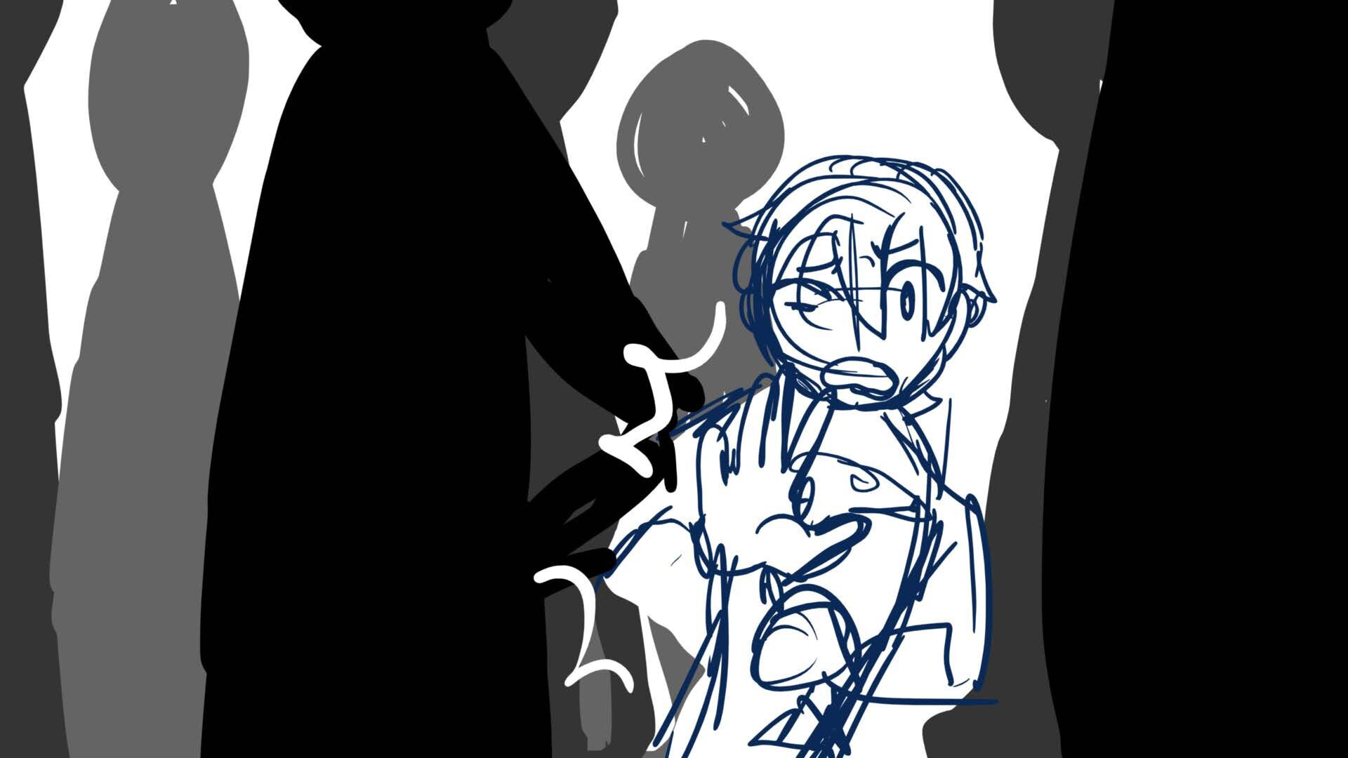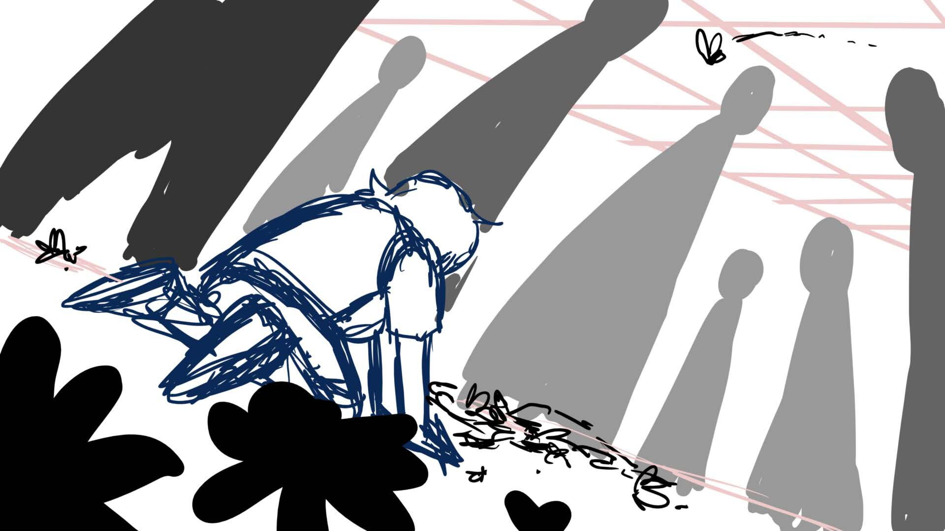 A climactic scene from the short film 'Monochromi'.