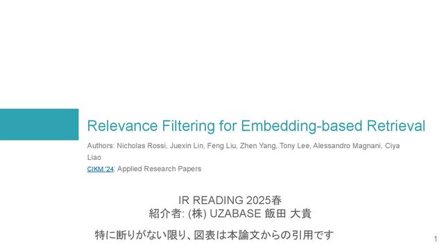 Feng Liu, Zhen Yang, Tony Lee, Alessandro Magnani, Ciya Liao CIKM '24: Applied Research Papers IR READING 2025春 紹介者: (株) UZABASE 飯田 大貴 特に断りがない限り、図表は本論文からの引用です 1