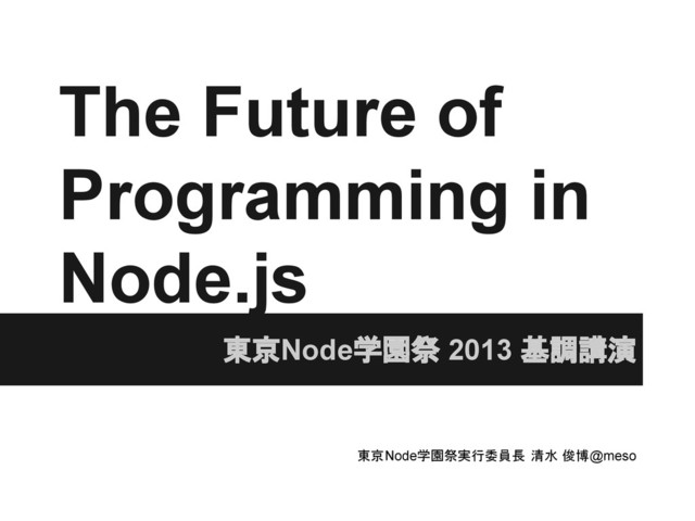 The Future of Programming in Node.js 東京Node学園祭 2013 基調講演 東京Node学園祭実行委員長