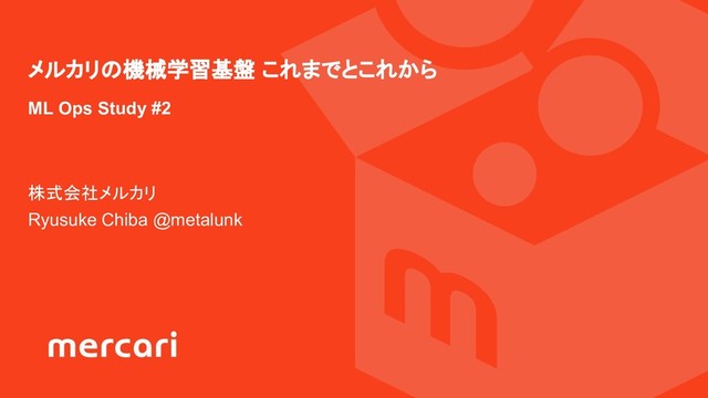 メルカリの機械学習基盤 これまでとこれから 株式会社メルカリ Ryusuke Chiba @metalunk ML Ops Study #2