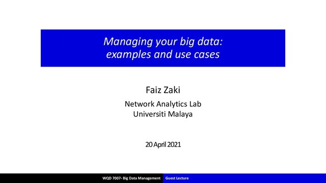 9. Guest Lecture Name WQD 7007- Big Data Management Use Case
