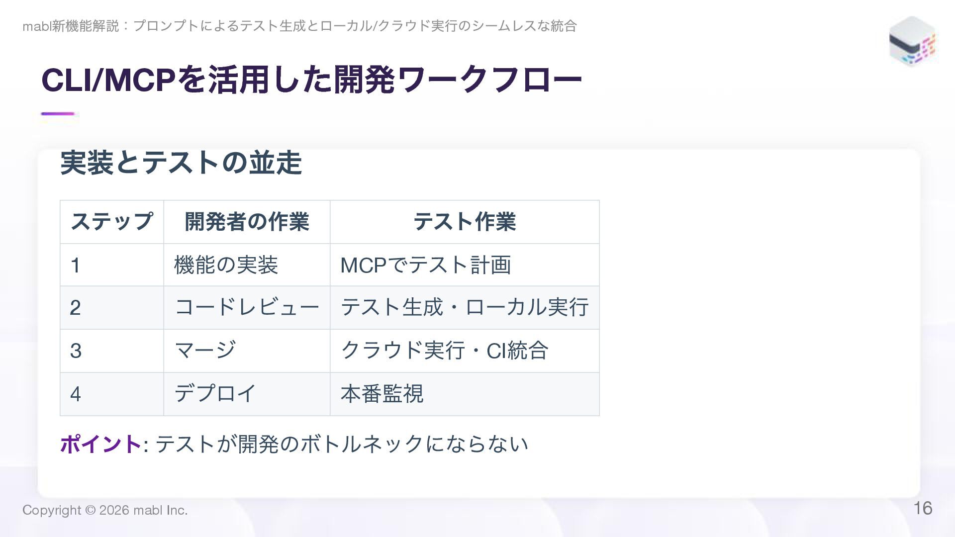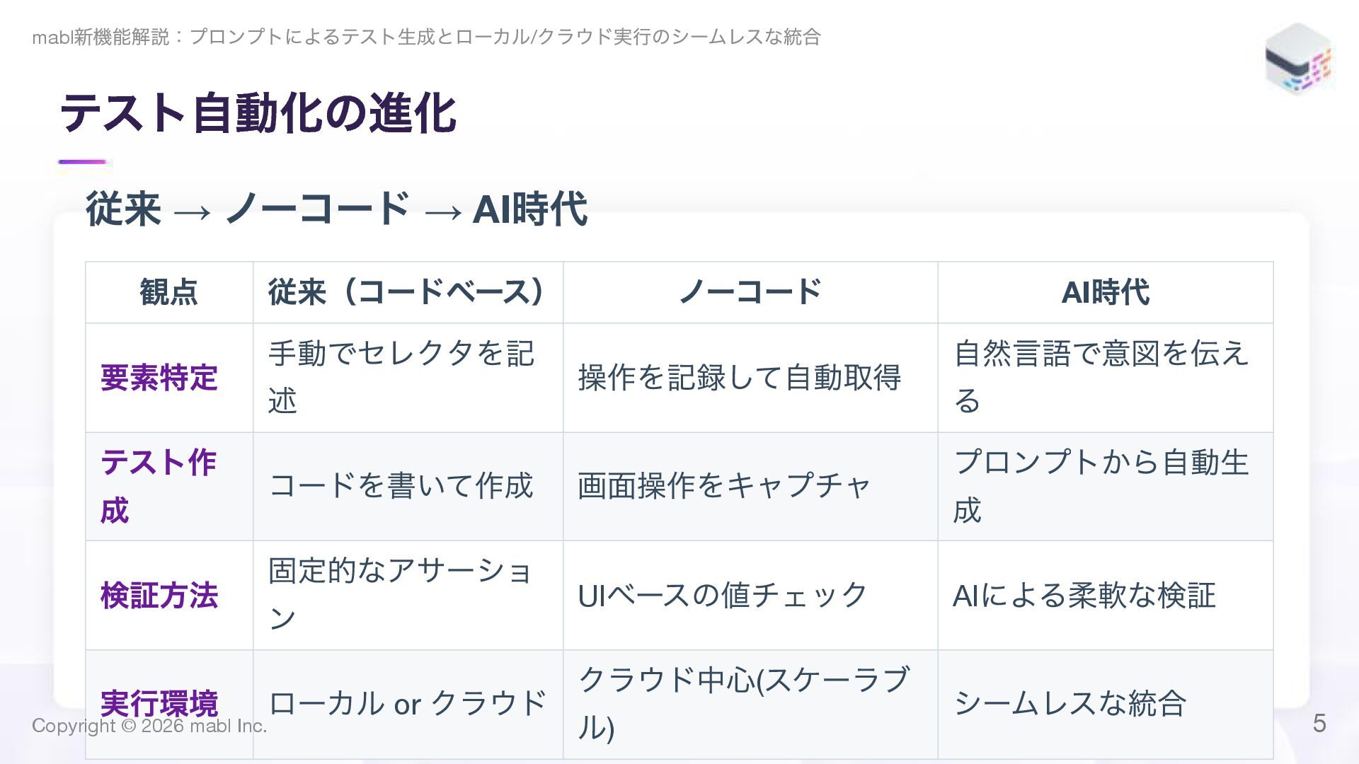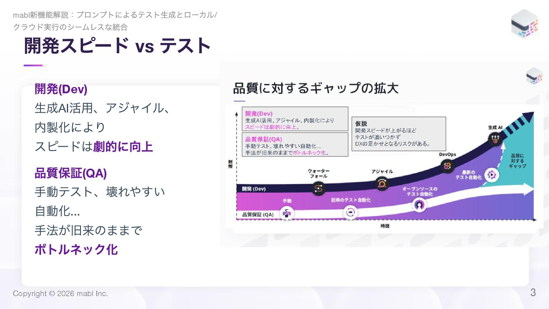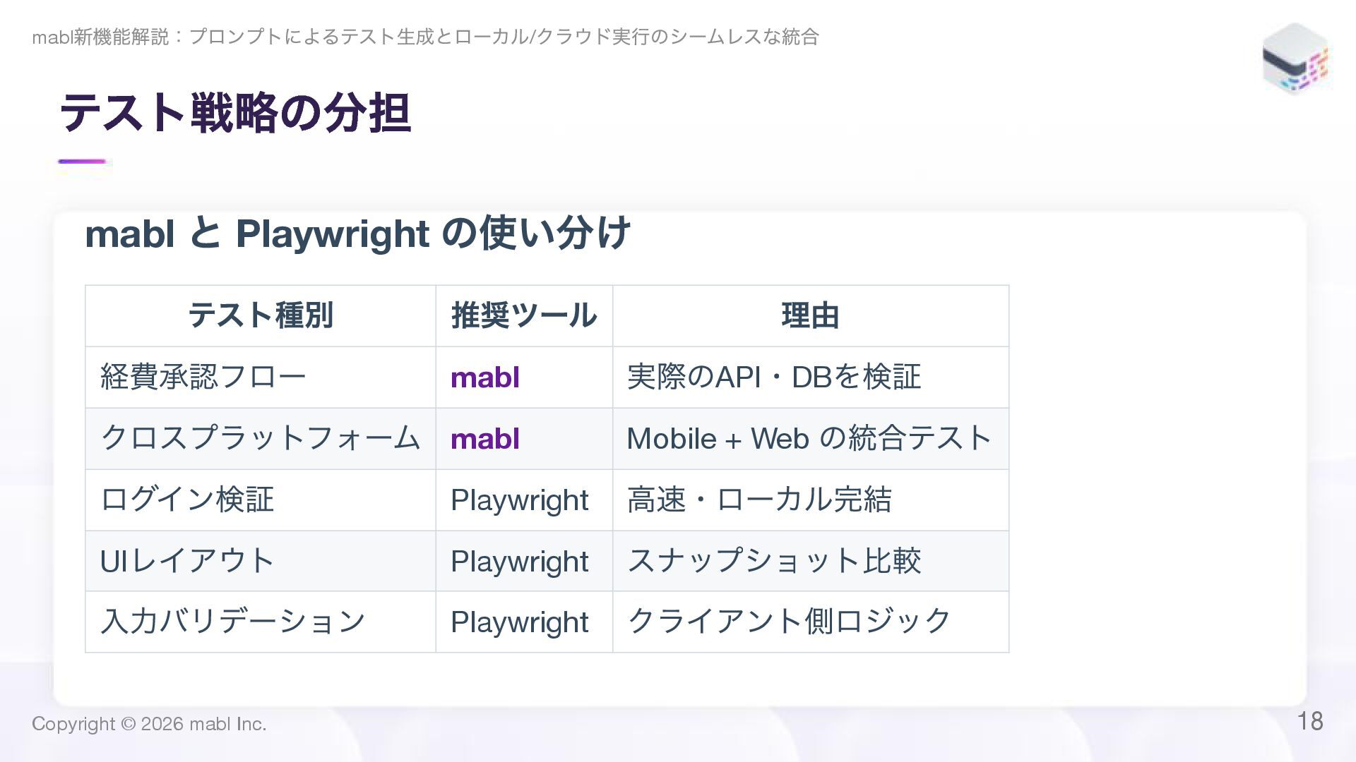 2026/01/28 に開催したウェビナー「mabl新機能解説:プロンプトによるテスト生成とローカル/クラウド実行のシームレスな統合」にて使用した資料です。