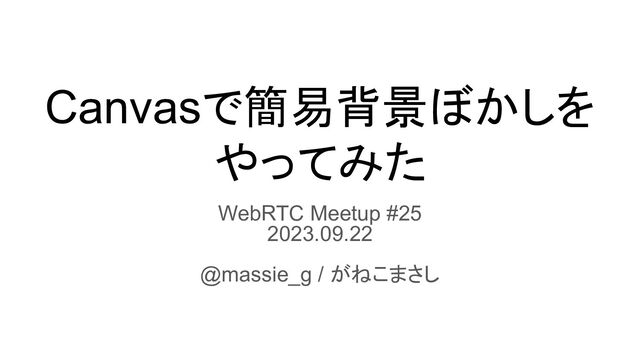 Canvasで簡易背景ぼかしを やってみた WebRTC Meetup #25 2023.09.22 @massie_g / がねこまさし