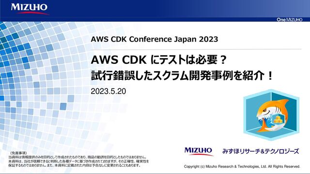 AWS CDK にテストは必要? 試行錯誤したスクラム開発事例を紹介! 2023.5.20 AWS CDK Conference Japan 2023