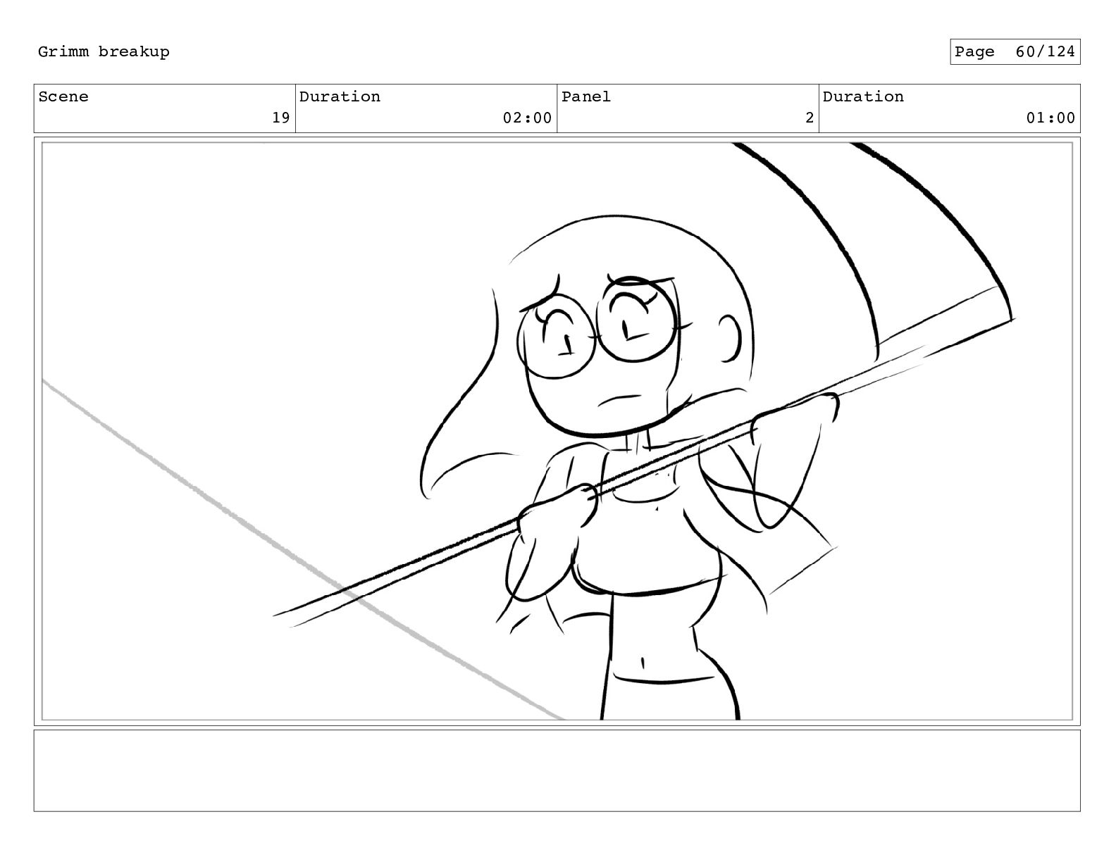 Scene 32 Duration 02:00 Panel 1 Duration 01:00 Grimm breakup
