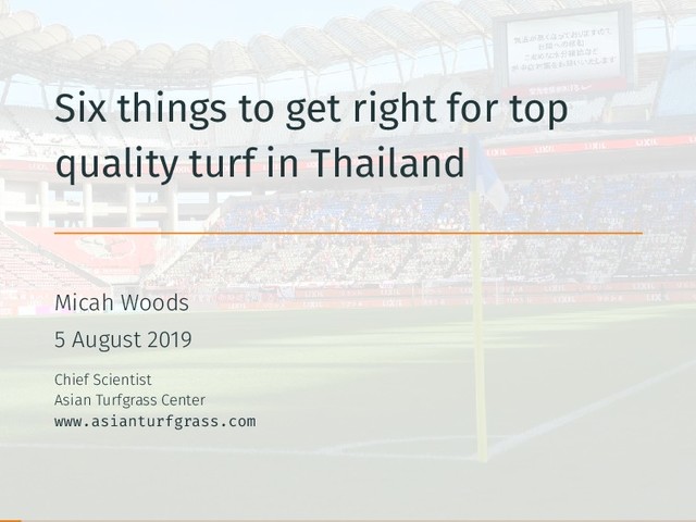 I suggested careful attention to mowing, fertilizer, the growth rate, soil water content, and the grass variety used, followed by regular and targeted assessment of the surface performance, will invariably lead to top quality turf in Thailand.
