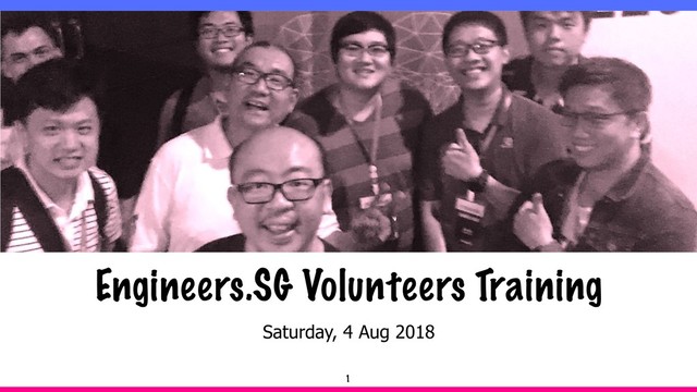 the engineers in Singapore?", Engineers.SG seeks to be the place for anyone to get to know, learn and interact with the Singapore tech community. • On the site, you can find a curated list of videos recording of local tech meetups and events. 5