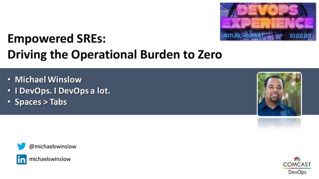 create the fog that impedes our vision.” – Dana Wilson, SVP of Reliability Engineering, Comcast @michaelswinslow | #doe20