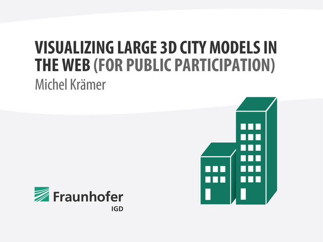 The presentation starts with a motivating example explaining how 3D city models in the Web can help urban planners and decision makers to present their policy plans to the public to engage all stakeholders in the planning process.