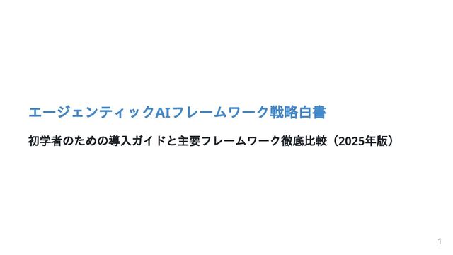 エージェンティックAI フレームワーク戦略白書 初学者のための導入ガイドと主要フレームワーク徹底比較(2025 年版) 1