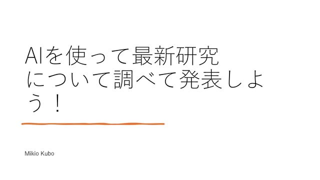 AIを使って最新研究 について調べて発表しよ う! Mikio Kubo