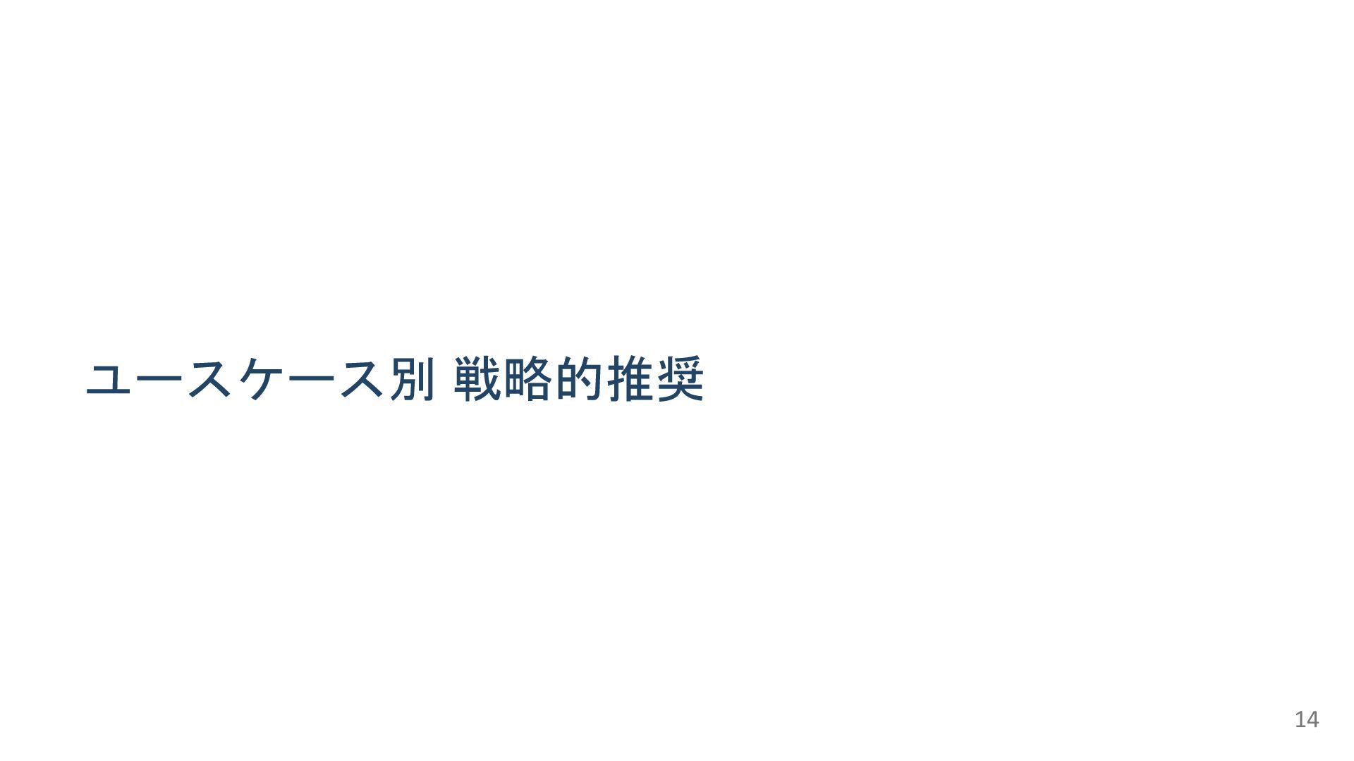 による高い制御性 弱み: 複雑な抽象化 (デバッグ困難)、頻繁な破壊的変更 LlamaIndex RAG パイプライン構築に特化したデータフレームワーク 強み: RAG における最高クラスの機能とカスタマイズ性 弱み: RAG 以外のタスクには柔軟性が低い 13