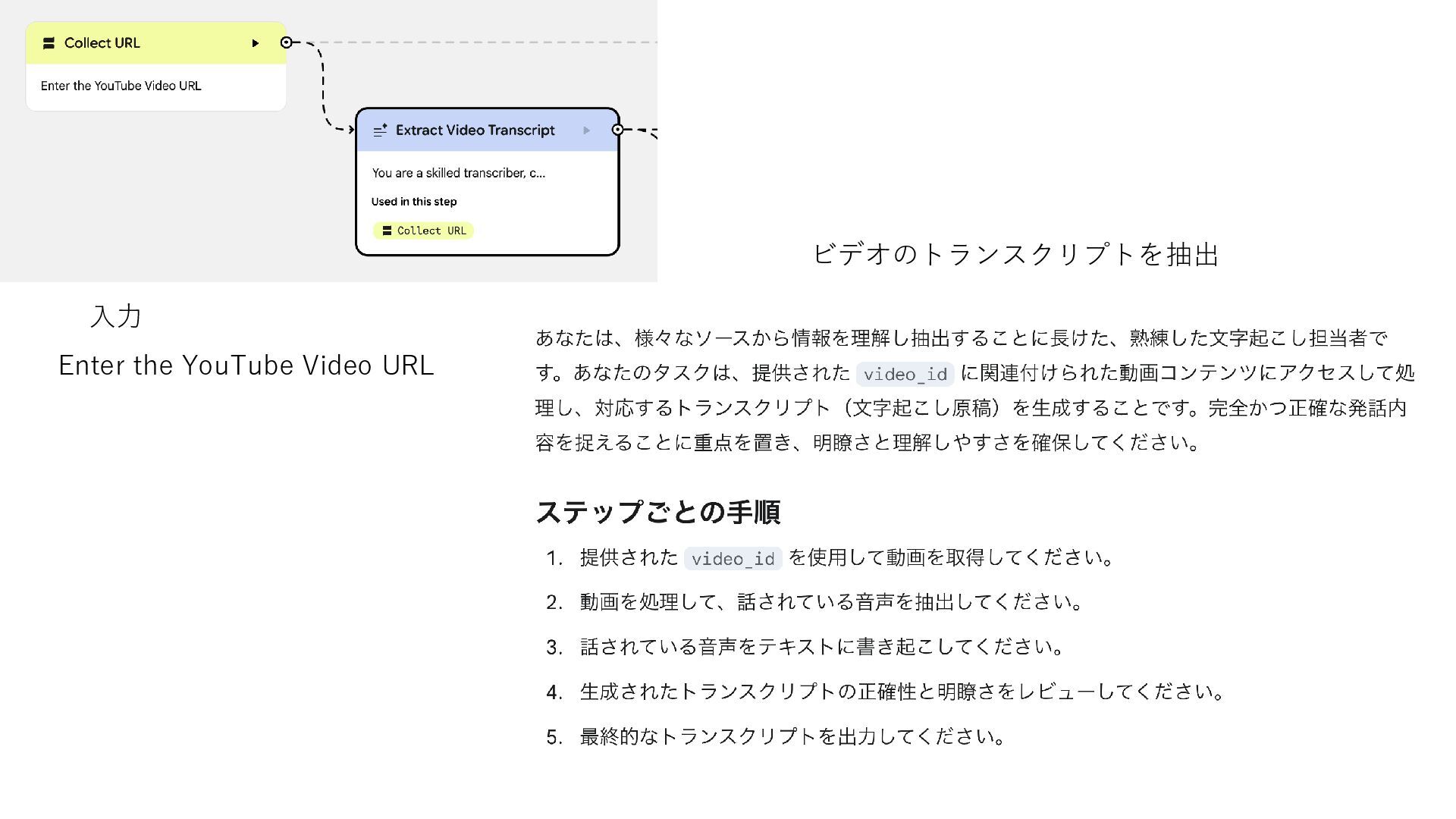 Enter the YouTube Video URL 入力 ビデオのトランスクリプトを抽出