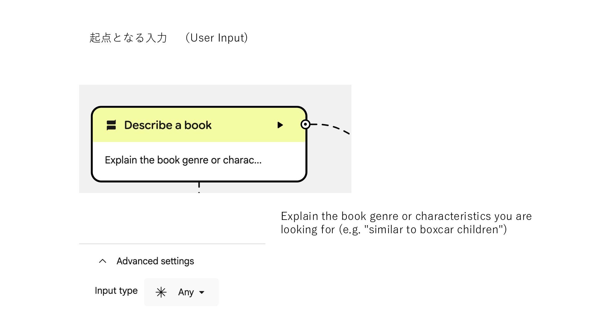 (e.g. "similar to boxcar children") 起点となる入力 (User Input)