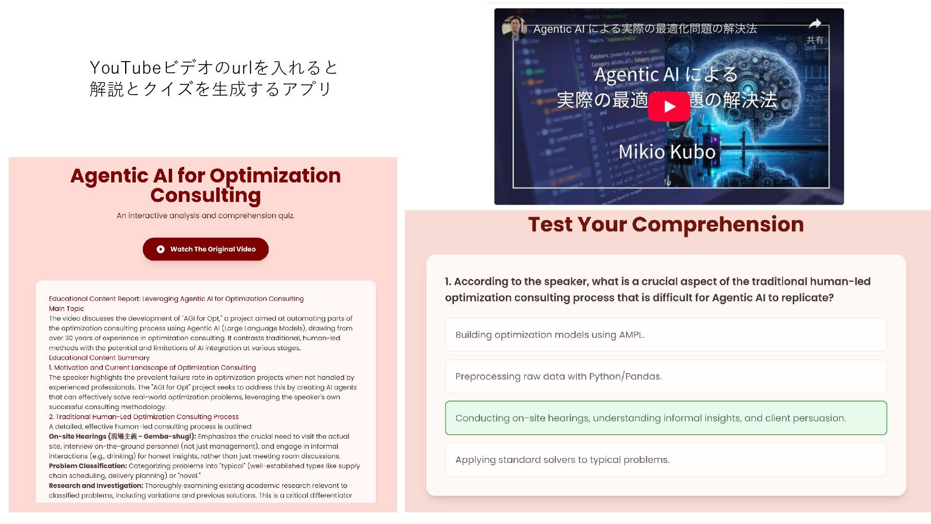 YouTubeビデオのurlを入れると 解説とクイズを生成するアプリ