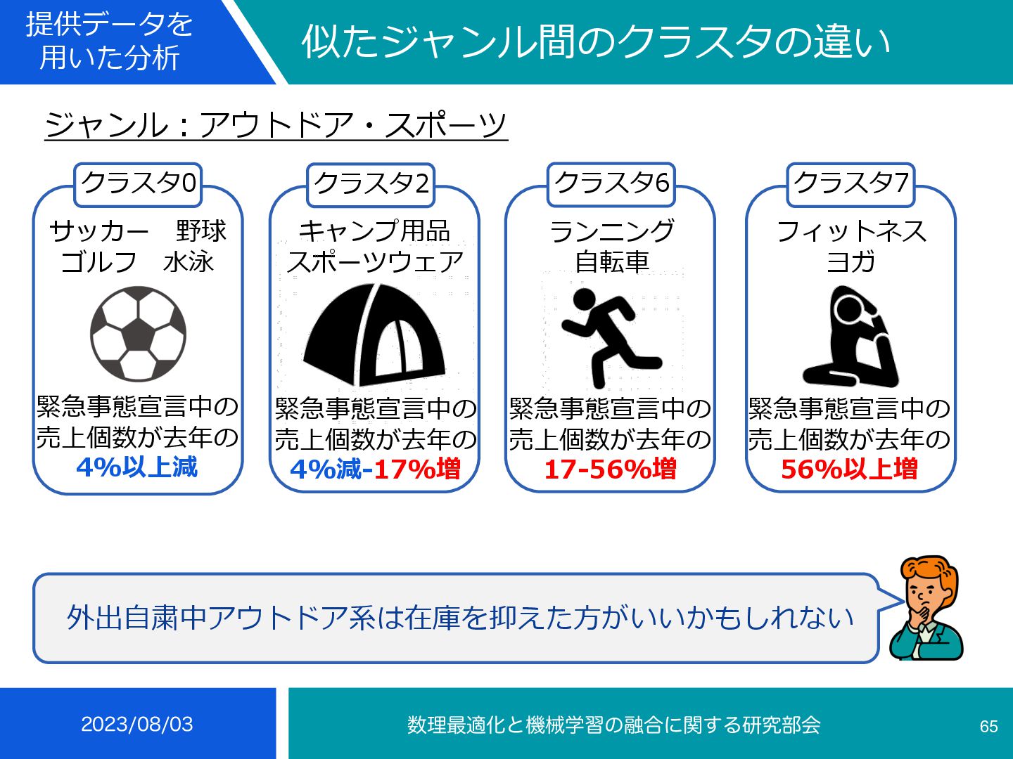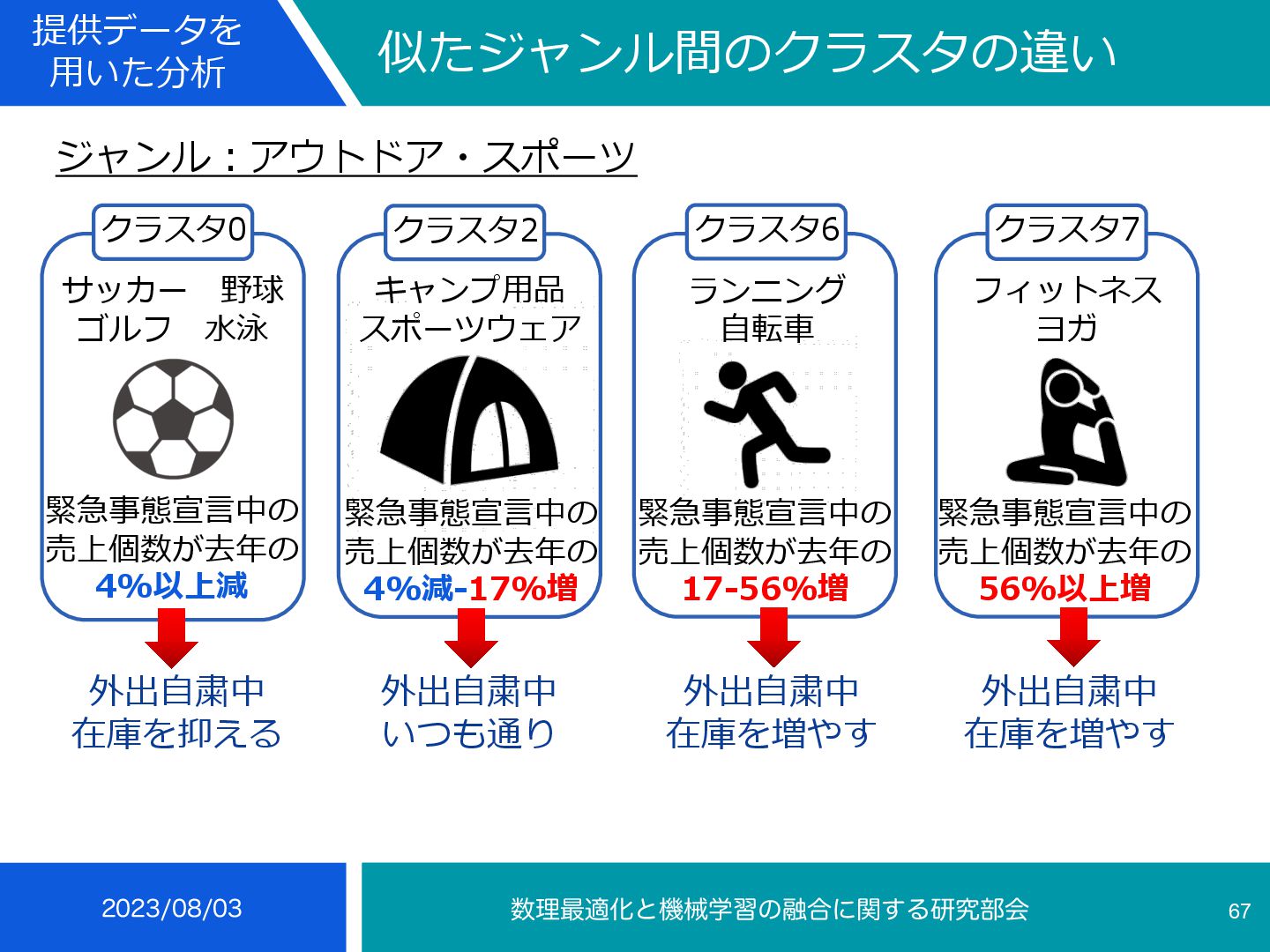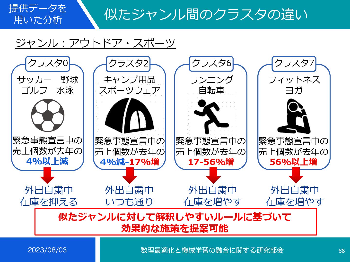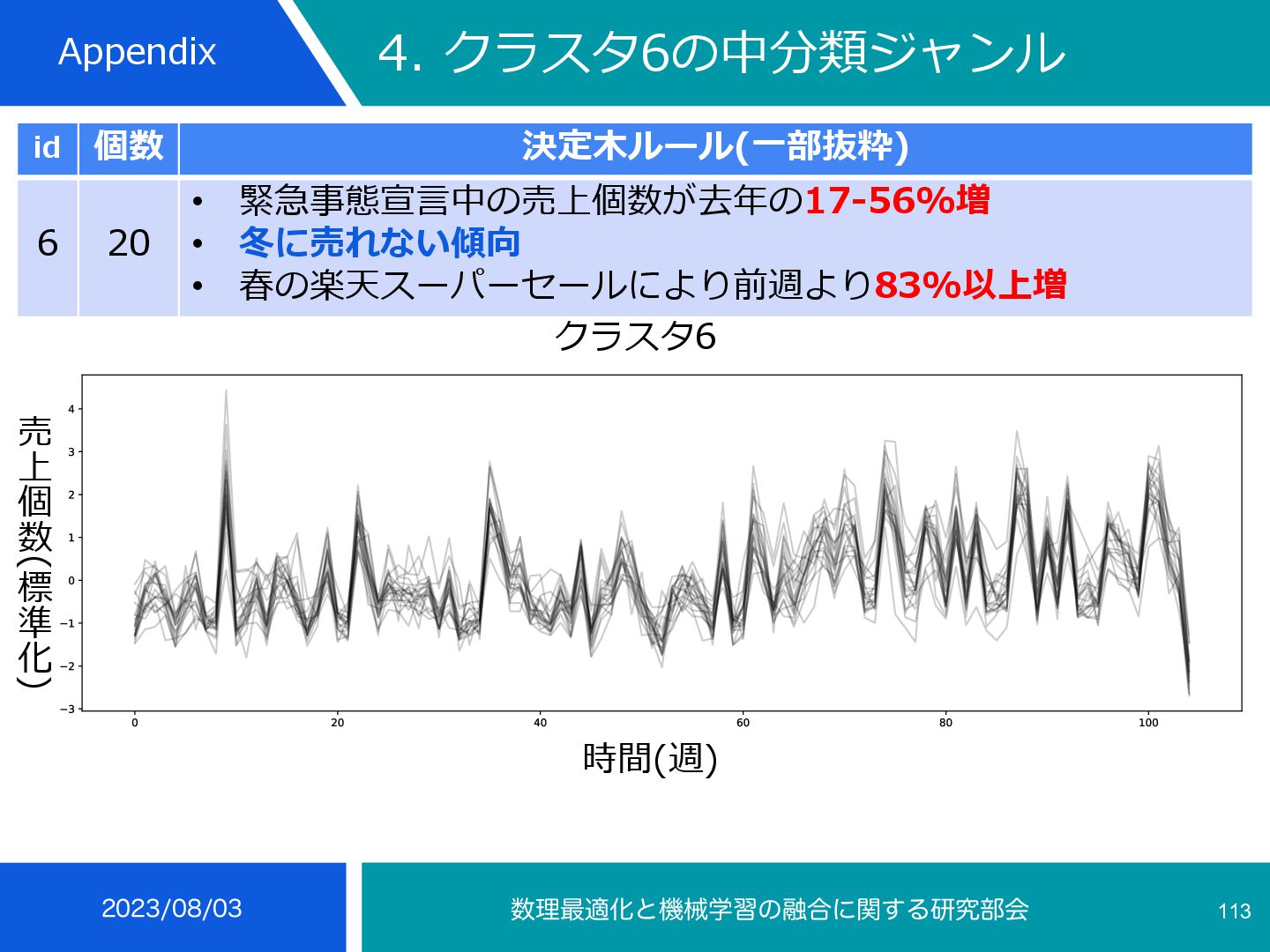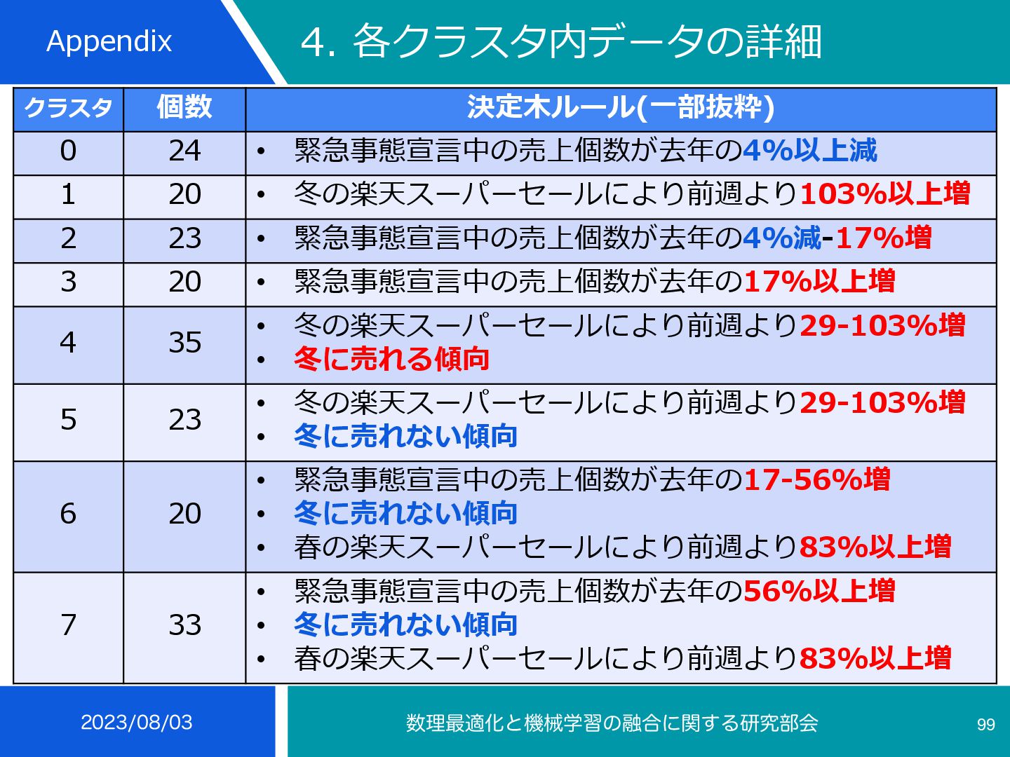 4 35 • 冬の楽天スーパーセールにより前週より29-103%増 • 冬に売れる傾向 インテリア⼩物・置物, ライト・照明器具, メンズ, コーヒー・お茶⽤品, 鍋・フ ライパン, ボディピアス, あめ・ミント・ガム, せんべい・⽶菓, 和菓⼦, 製菓・ 製パン材料, 健康グッズ, 健康⾷品, NintendoSwitch, PCサプライ・消耗品, 外付けドライブ・ストレージ, ウイスキー, ワイン, コレク ション, 季節・空調家電, ⽣活家電, ⽇本酒, 焼酎, バス⽤品, ⽂房具・事務⽤品, 絵本・児童書・図鑑, コーヒー, その他(⾷品), チーズ・乳製品, フルーツ・果物, 乾物, 惣菜, 漬け物・梅⼲し・キムチ, ⽶・雑 穀, 精⾁・⾁加⼯品, ⿂介類・⽔産加⼯品 ふるさと納税等による影響から⾷べ物が多い, クリスマスプレゼントに⽤いられるものが⾒られる
