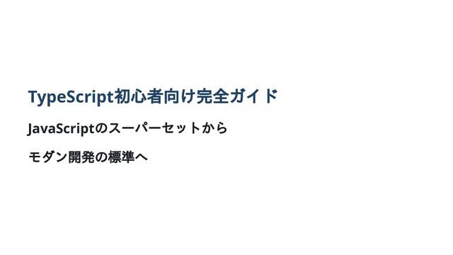 TypeScript 初心者向け完全ガイド JavaScript のスーパーセットから モダン開発の標準へ