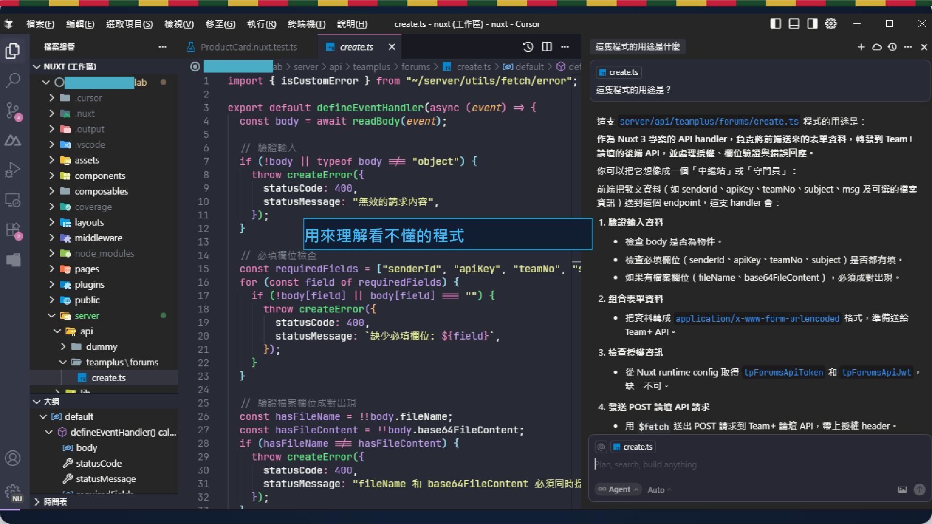 1. 專案使用 TypeScript strict mode,嚴禁使用 any。 2. 所有 API 必須包含 try-catch 錯誤處理,並回傳標準 Error Response。 3. 遵循 CSC style guide。 4. 所有函數需撰寫 JSDoc 註解。 5. 前端優先使用 Functional Component 與 Hooks (React)。 6. CSS 使用 Tailwind class,禁止 inline style。 .cursor/rules/case-rule/RULE.md 關鍵技巧:Context Management
