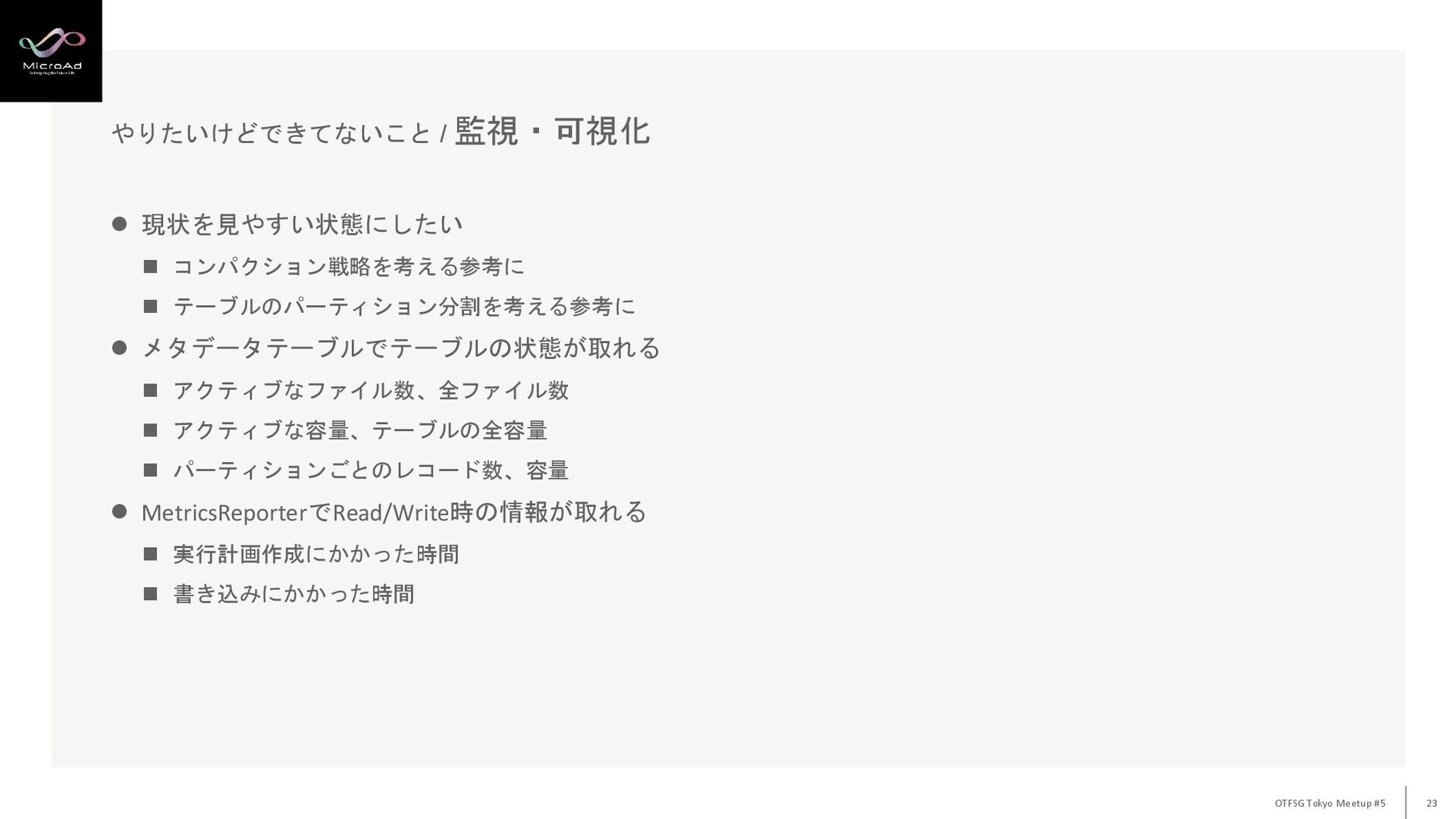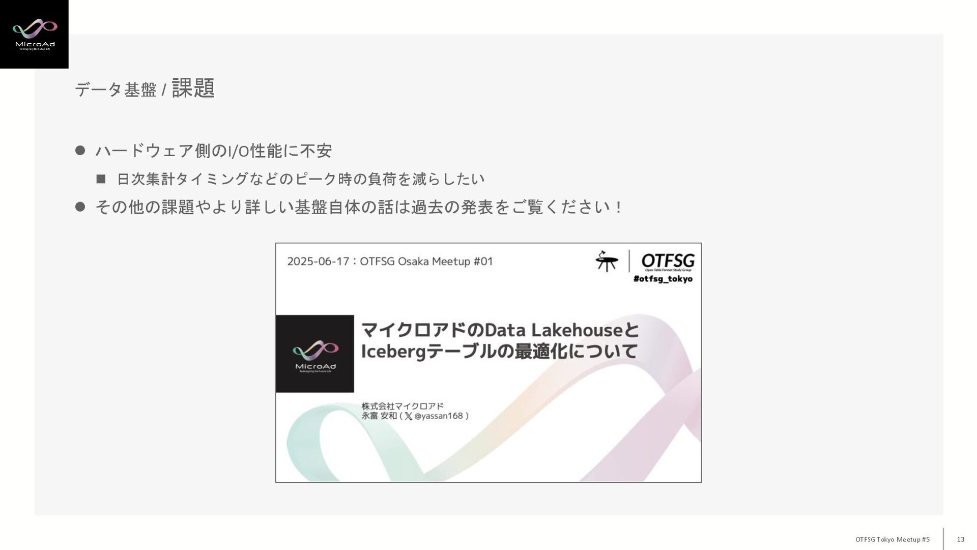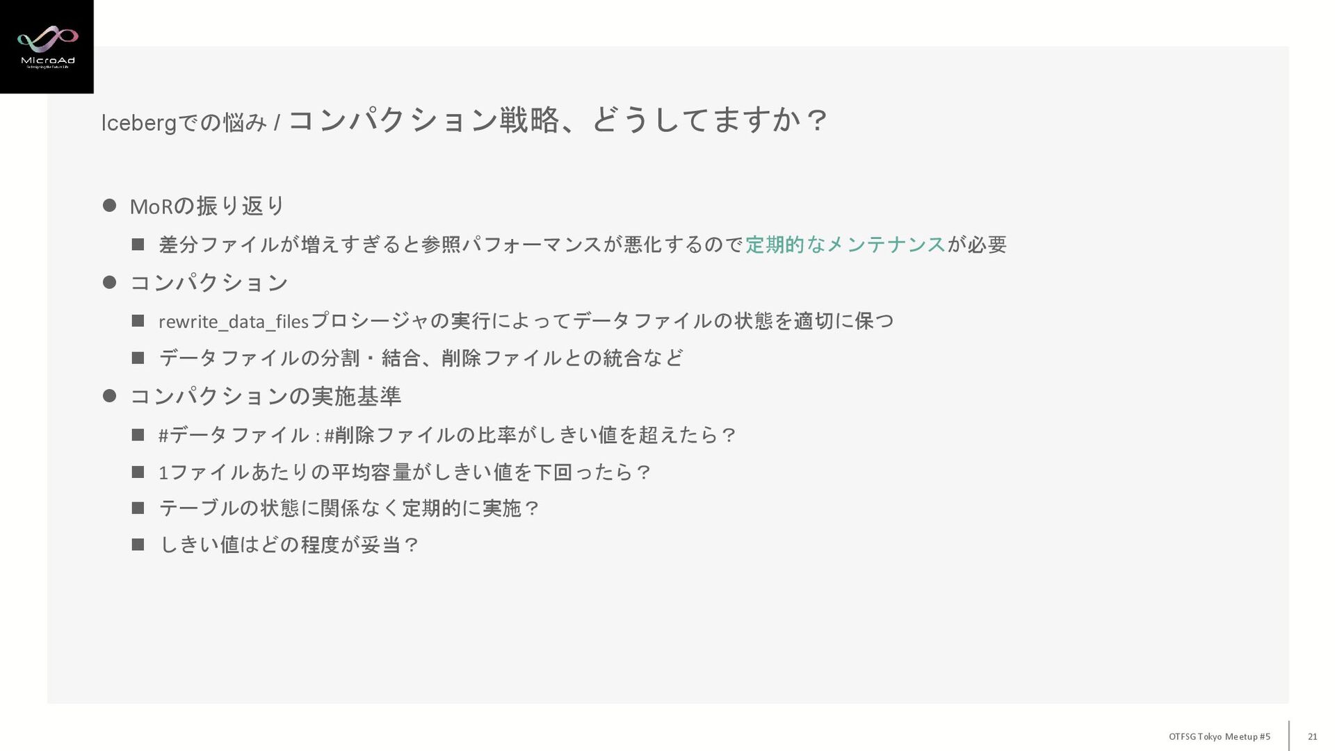 OTFSG Osaka #1 / やっさん “マイクロアドのData LakehouseとIcebergテーブルの最適化について”