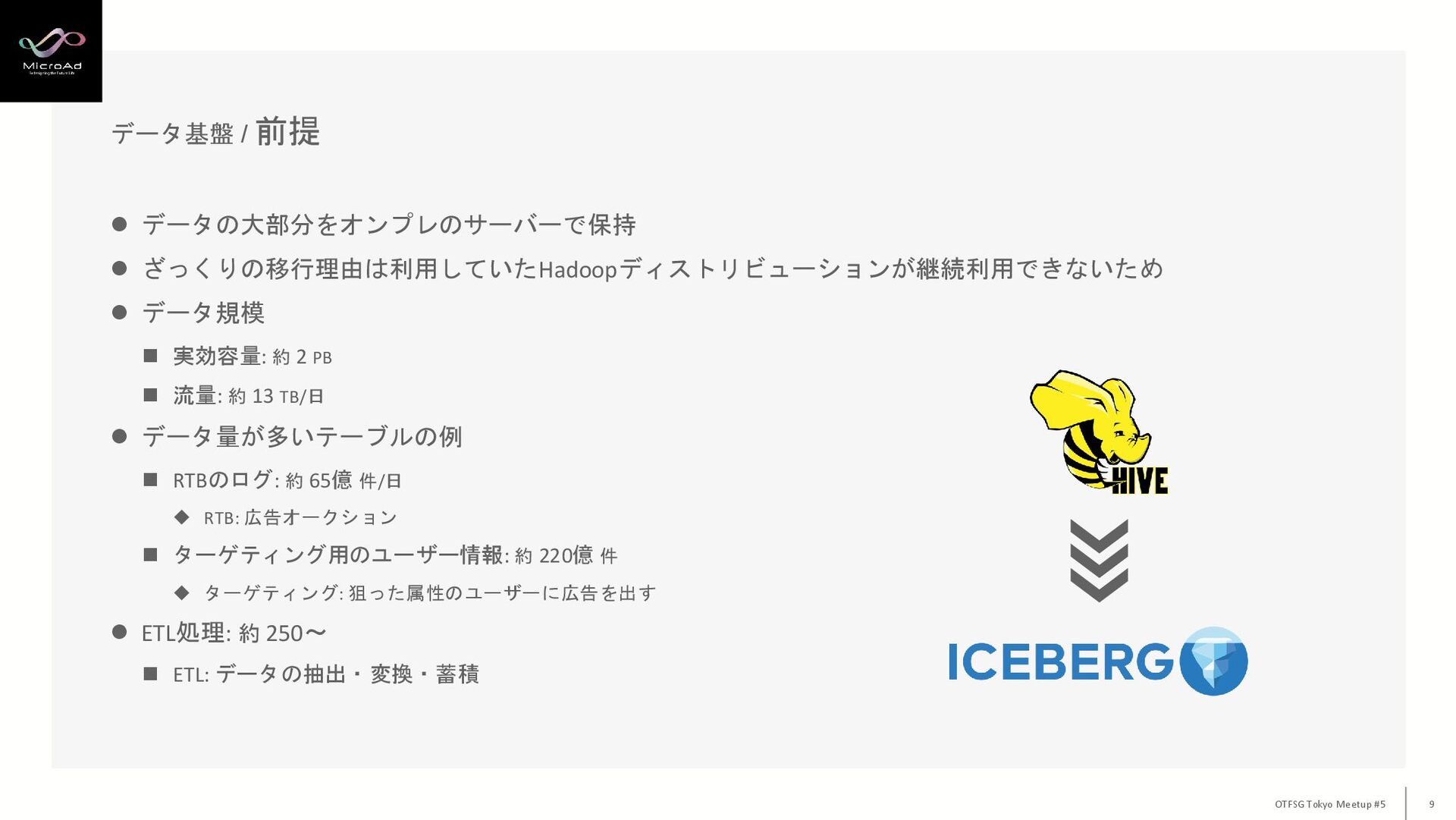 マイクロアドでの Hive → Iceberg 移行事例紹介 株式会社マイクロアド 高橋 唐樹 OTFSG Tokyo
