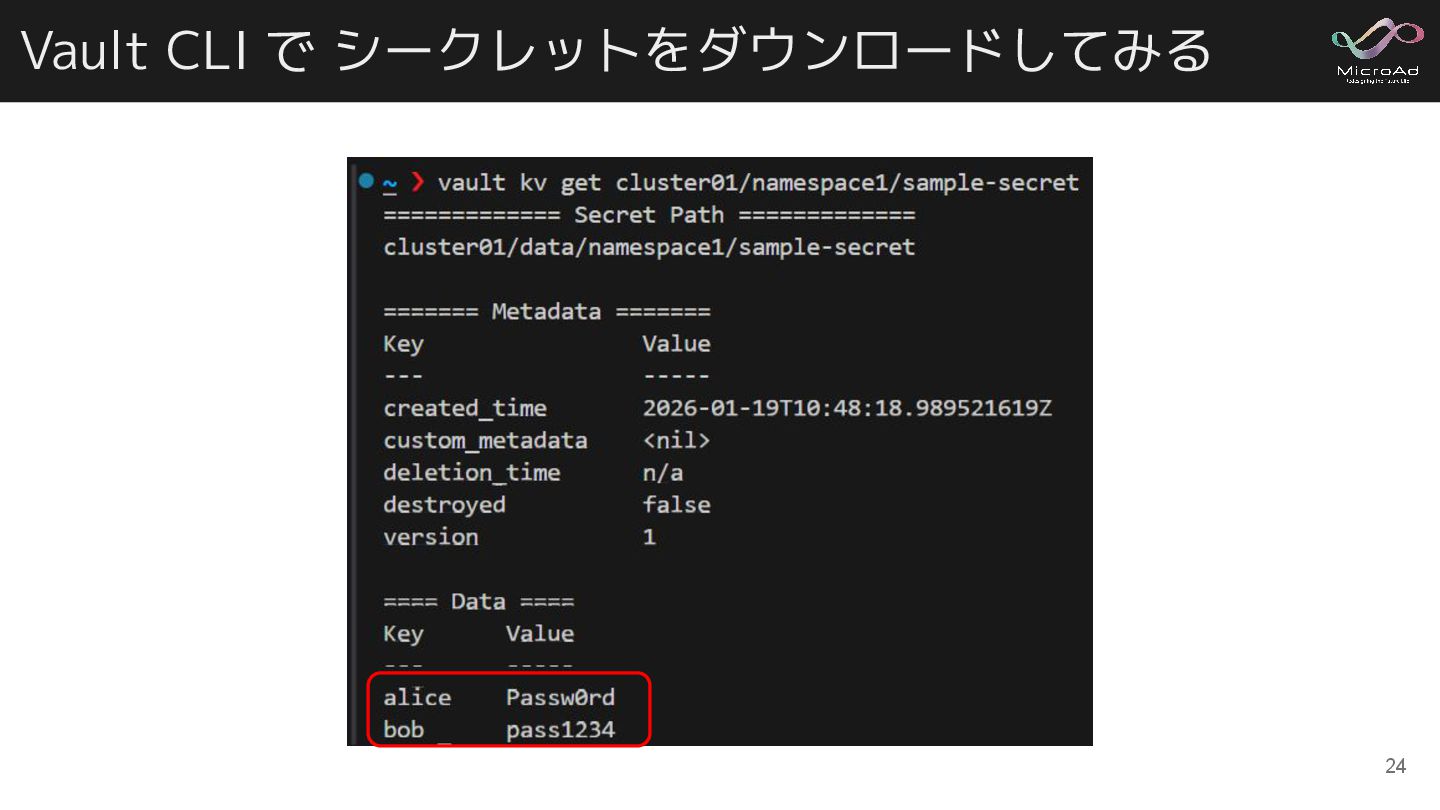Vault CLI で シークレットをダウンロードしてみる 24