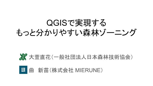 FOSS4G 2024 Japan コアデイ https://www.osgeo.jp/events/2024-2/foss4g-2024-japan/coreday 大萱直花(一般社団法人日本森林技術協会) 曲新苗(株式会社MIERUNE)