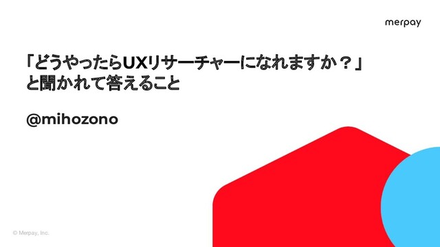 © Merpay, Inc. 1 「どうやったらUXリサーチャーになれますか?」 と聞かれて答えること @mihozono