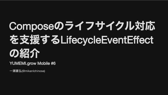Compose のライフサイクル対応 を支援する LifecycleEventEffect の紹介 YUMEMI.grow Mobile #6 一瀬喜弘(@mikanIchinose)