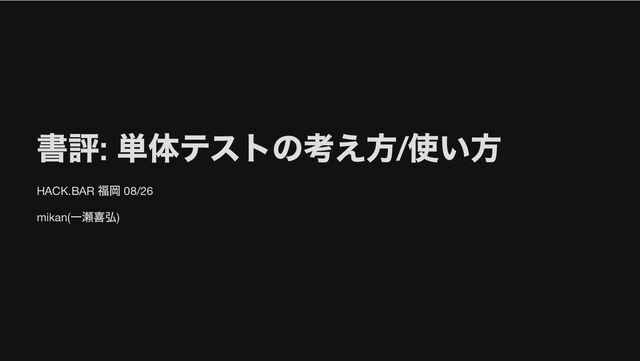 書評 : 単体テストの考え方 / 使い方 HACK.BAR 福岡 08/26 mikan( 一瀬喜弘)