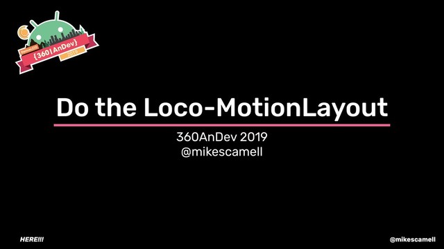 from Android Developers around the world? Checkout: androiddev.io (please it’s costing me $5 a month) Twitter: @mikescamell Website: mikescamell.com Podcast (on hiatus): androidsnacks.com (Skip to the “funny” bits at the end) Slides: https:/ /speakerdeck.com/mikescamell/do-the-loco- motionlayout-360AnDev-2019