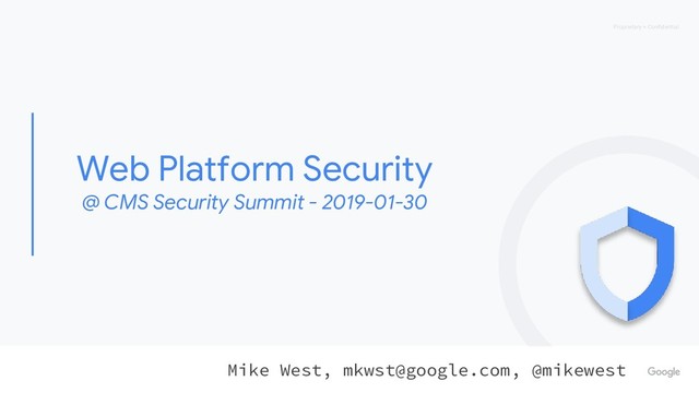 CMS Security Summit - 2019-01-30 Proprietary + Confidential Mike West,