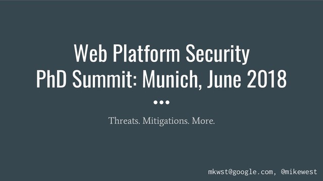 Web Platform Security. The threats browser vendors are exploring at the moment, and some mitigations thereof.