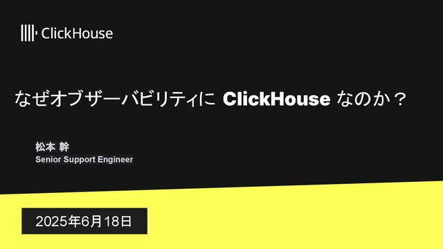 オブザーバビリティにおけるClickHouseの優位性について解説したプレゼンテーション資料です。また、実際の運用データとコスト比較を交えて説明しています。